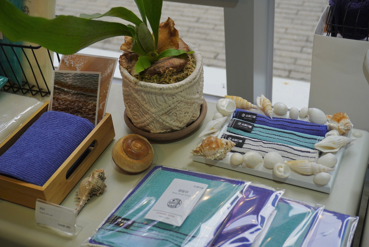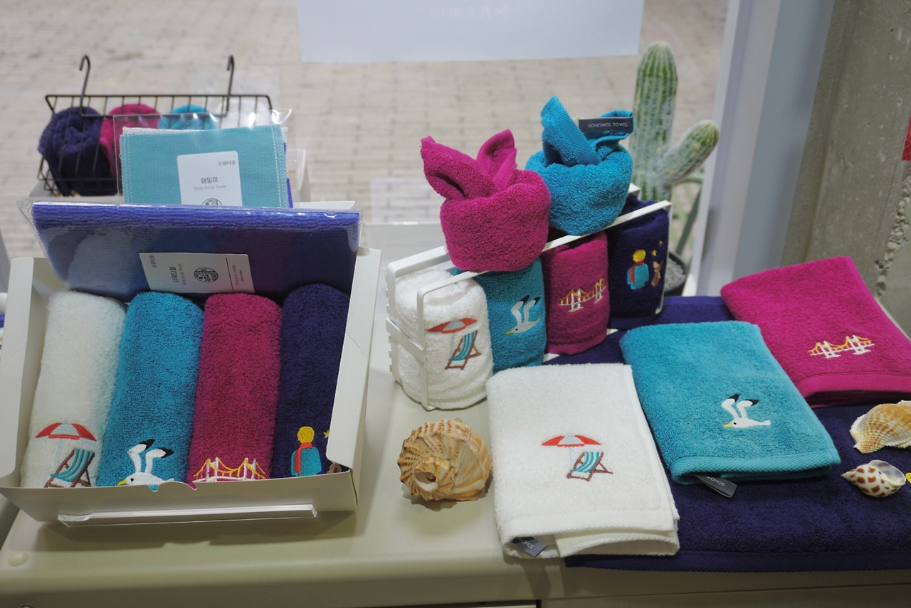 이곳만이 송월타월의 유일한 직영점이고 '부산에서의 하루'라는 컨셉으로 이곳에서만 구매할 수 있는 타월세트도 있었어요. 아침부터 밤까지의 부산을 담은 거죠. 이 흥미로운 스토리에서 저도 지갑이 열렸답니다