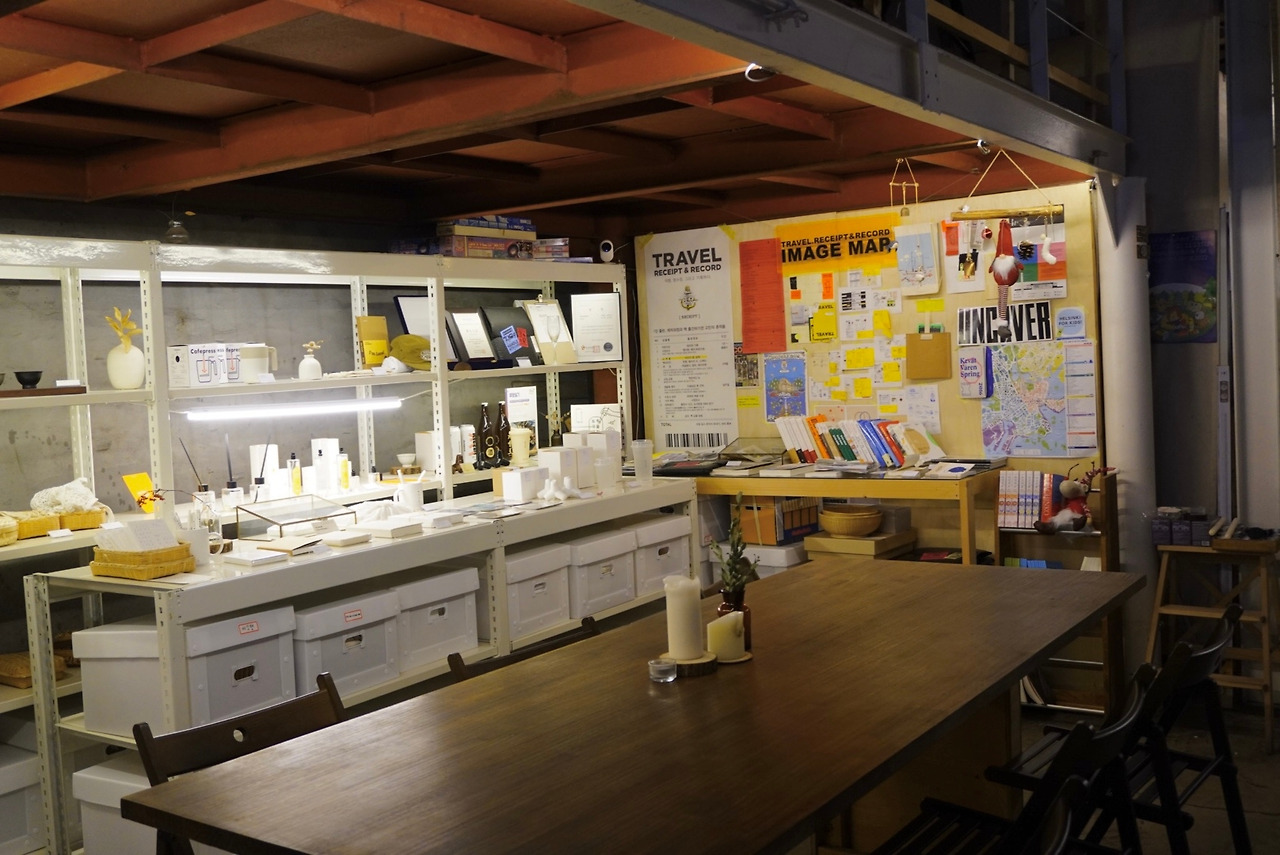 물건을 판매하는 샵이기도 하지만 월 1회 포틀럭(각자 가져온 음식과 함께 대화를 나누는 모임)도 운영하고,