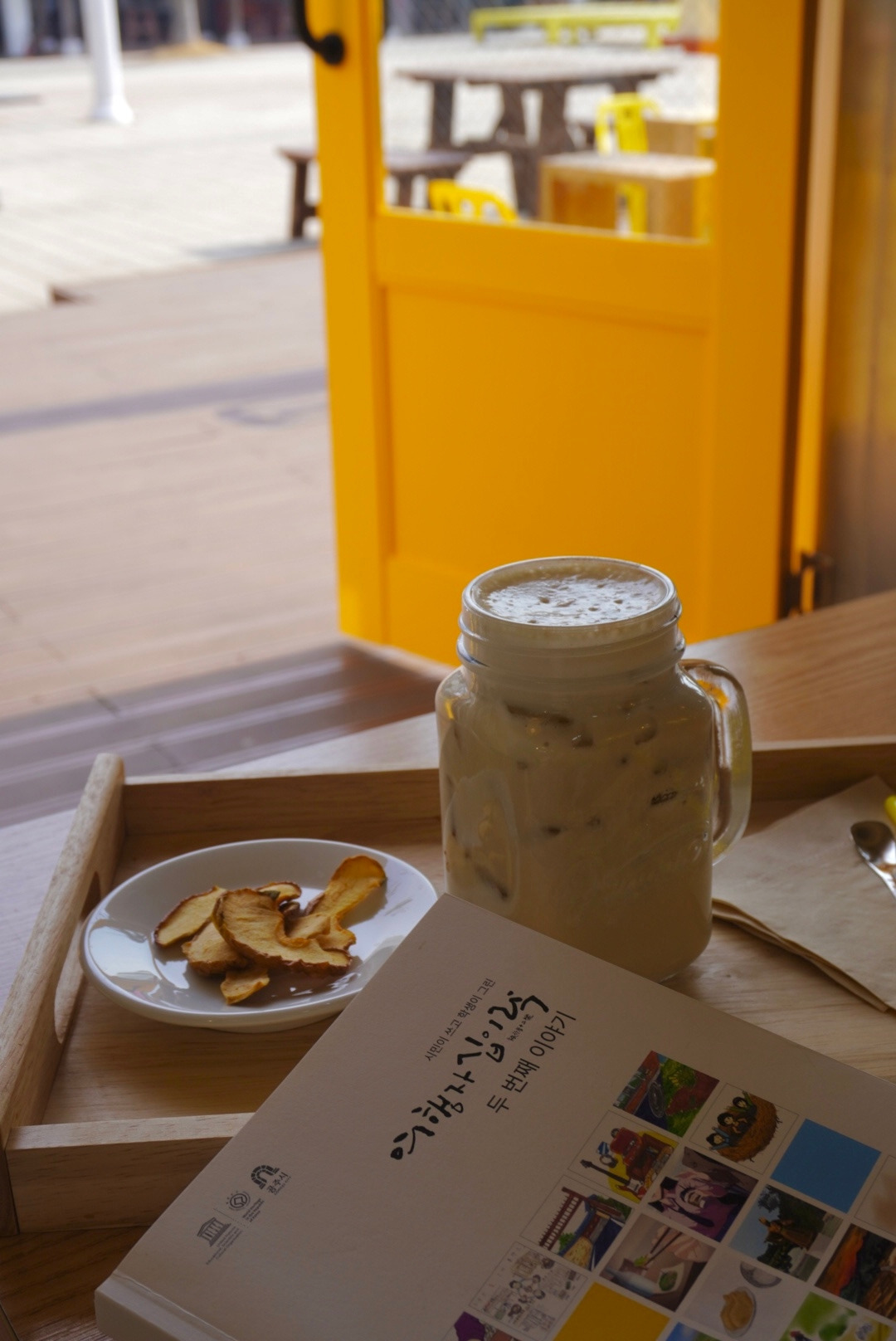 마지막으로 소개할 카페는 공주산성시장을 구경하다가 우연히 발견한 곳이랍니다. '공주카페 요새 여행자센터'예요. 샛노란 외관에도 시선이 갔지만, 여행자센터라? 시장 한편에 마련된 여행자를 위한 공간이 과연 어떤 곳이고, 왜 생겼는지 등 너무 궁금해져 버렸어요. 월요일은 정기휴무라 이튿날 아침을 먹고 첫 손님으로 가게에 들어가 보았습니다.
