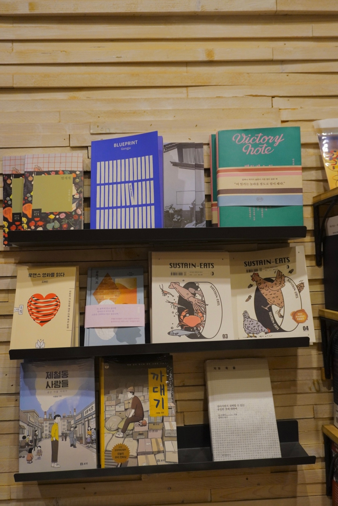 제민천변은 특이하게도 독립책방이 생각보다 많은데, 서로 다른 특징을 갖고 있더라구요. 그렇기 때문에 모두 둘러봐도 지겹지 않을 것 같았어요. 그중에서도 국내여행을 좋아하고 마침 여행으로 이 동네를 발견한 저로선 여행책방은 참새가 방앗간에 안 들르는 격!