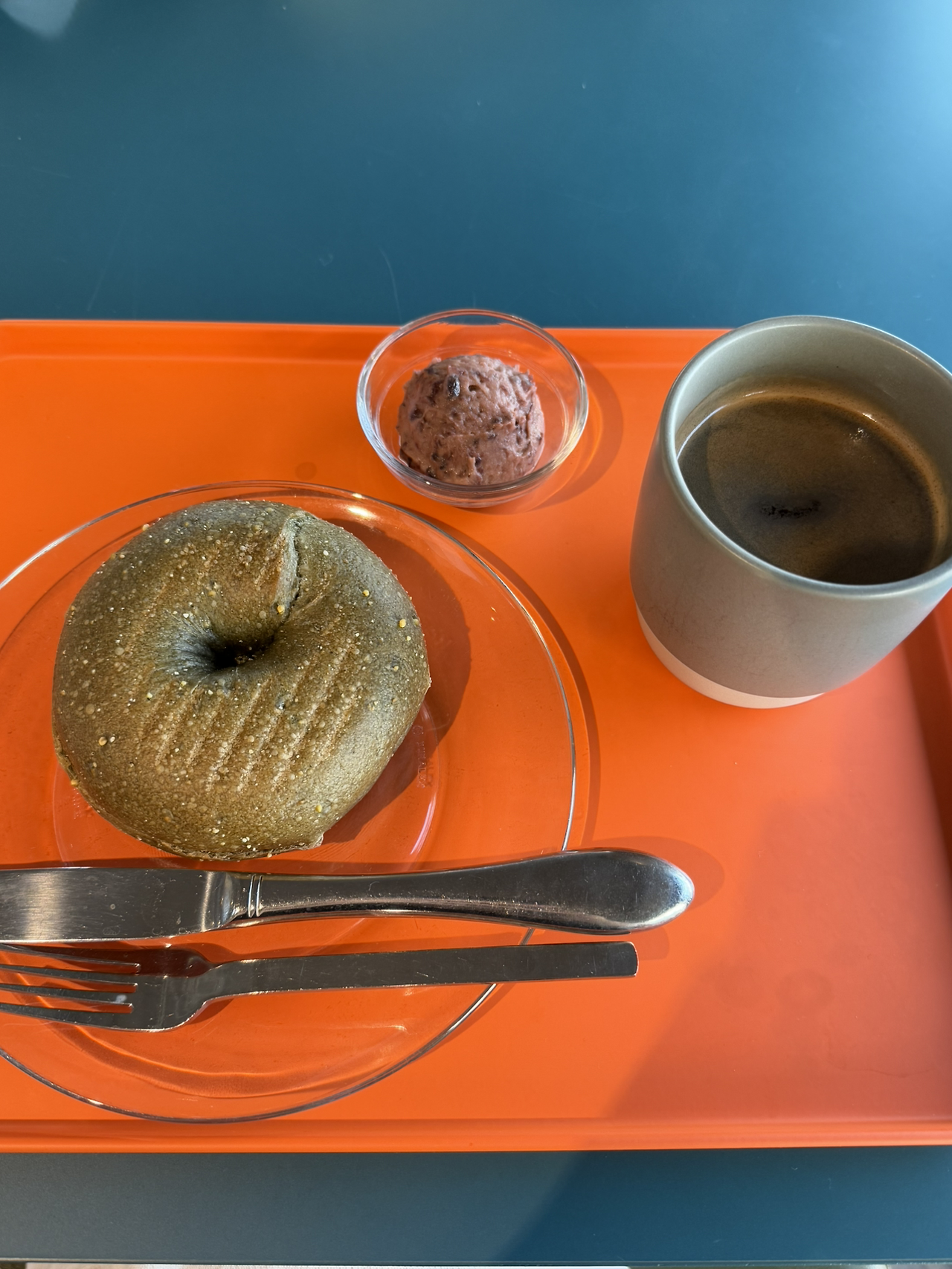 숙소 안에 있는 카페라 접근성이 좋아서 간 것 맞지만! 충분히 찾아올만한 가치가 있는 카페였어요. 그냥 베이글 아니고 오메기 베이글이 있다잖아요! 기본으로 팥앙금이 나오는 게 킥� 여기서 제주스러움을 더 추가하고 싶다? 하우스블랜드 '성산'원두로 커피까지 추가하면 끝끝끝. (그런데 사실 여긴 너티클라우드가 젤 유명하대여)