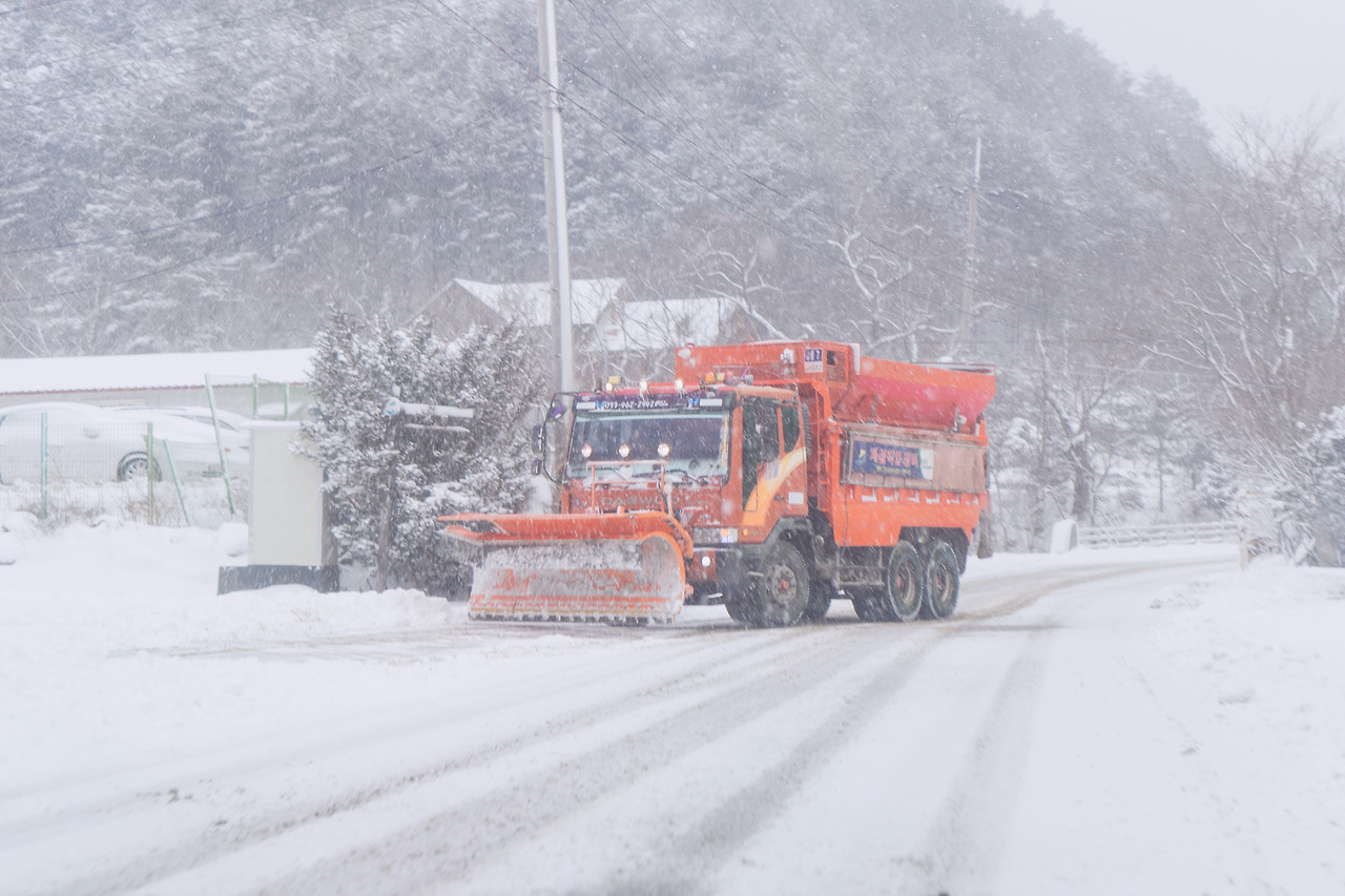 이 날 만난 일반 차량은 거의 손으로 꼽을 만큼 적었다. 우리 나라에 제설차가 이렇게 많았나 싶을 정도로 제설차를 자주 마주쳤다.