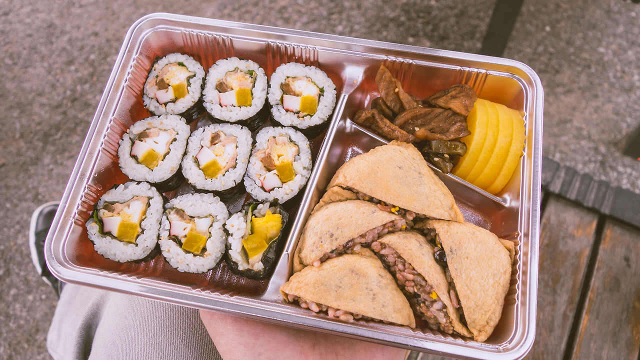 보통은 시커먼 남자들만. 새벽에 겨우 눈을 비비고 나온 아주 못봐줄 몰골로 길을 나서는데 이 날은 J군의 여자친구가 동행을 했다. 덕분에 이런 호사스런 도시락을 세상에. 전 날 미리 준비해뒀다고 한다.