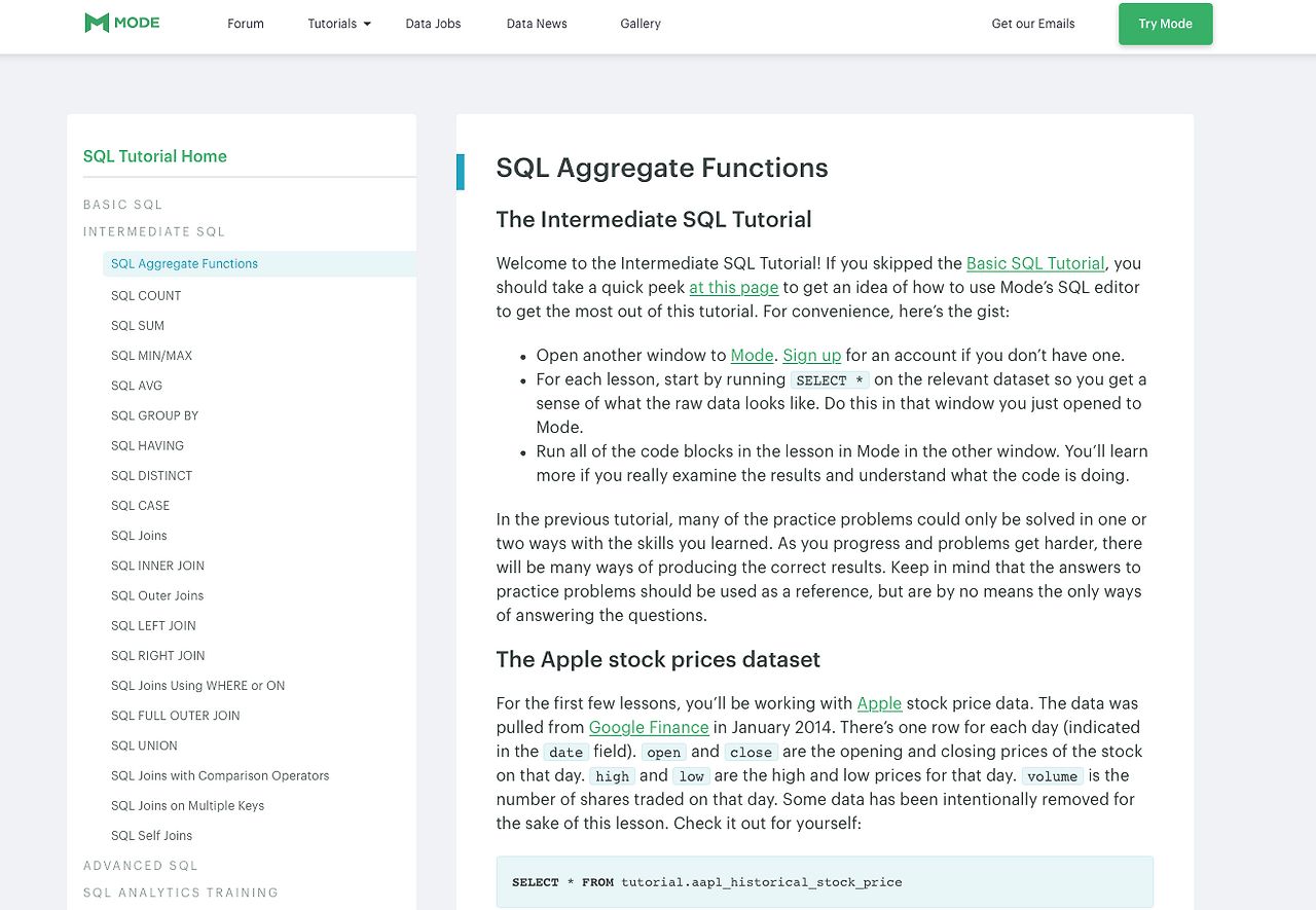 - The SQL Tutorial for Data Analysis (Mode Analytics)