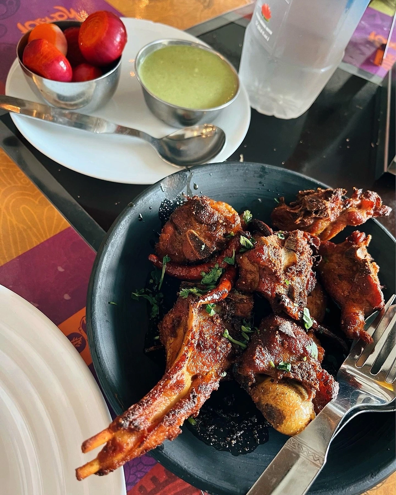 한 직원분이 메뉴를 건넸고 수업에서 들은 지식을 바탕으로 사모사와 탄두리 치킨, 양고기 마살라 커리, 팔락 파니르(시금치 치즈 커리), 버터 난, 흰밥, 그리고 라씨 두 개를 주문했다. 궁금했던 메뉴들을 다 시켜버린 바람에 여자 둘이 먹기에는 양이 좀 많나 싶어 나는 “너무 많이 시켰나? 했지만 “이때 아니면 또 언제 먹어보겠어.” 하며 금방 수긍하는 친구였다. 하지만 둘 다 말만 그랬을뿐 사실 그때는 뷔페에서 10접시씩 가득 먹어도 소화가 되던 시절이라 막상 많다는 생각은 못했던 것 같다.