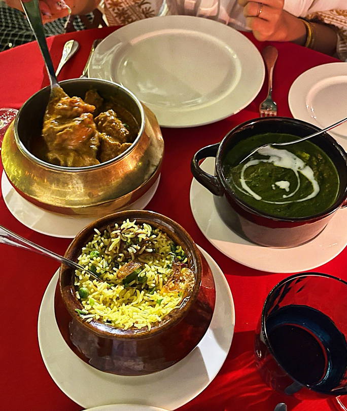 비리야니를 한 마디로 정의하자면 각종 향신료를 쌀과 함께 넣어 찐 밥이다. 그래서 비리야니에는 아로마가 있다는 표현을 많이 쓴다. 여기에 또 어떤 재료를 더 추가하는지에 따라 치킨 비리야니, 램 비리야니, 베지, 에그 등등의 종류로 나뉜다. 맛은 향이 좋은 밥에 짭짤하고 진한 커리맛이 나는 재료를 반찬 삼아 먹는 맛이다. 비리야니 자체로만 먹어도 충분하지만 나같이 다양하게 먹는 거 좋아하는 사람들은 커리며 케밥까지 골고루 시켜 같이 곁들여 먹는다.