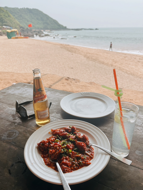 카약에서 내린 우리는 가볍게 커피든 맥주든 한잔하자며 바닷가를 마주하고 있는 한 식당을 찾았다. 이곳은 앞, 옆 막힌 곳 하나 없이 지붕과 기둥만 있어 전 좌석에서 시원하게 바닷가를 바라볼 수 있었다. 우리도 가장 앞쪽에 자리를 잡은 뒤 맥주와 진토닉 그리고 매콤한 고아 새우볶음 요리를 시켰다. 바다를 보며 파도 멍을 때렸다가 중간중간 남편과 담소를 나눴다가 다시 멍을 때리고 하는 게 어찌나 힐링이 되던지…