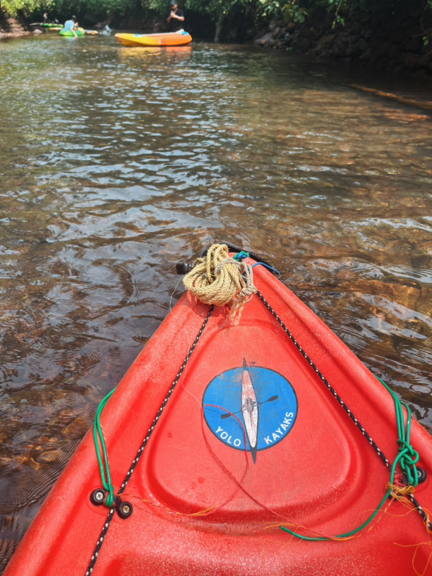 백워터는 생각했던 것보다 규모가 작고 수면이 얕았다. 카약을 빌리는 조건은 두 시간이었는데 백워터의 끝에서 끝까지 천천히 왔다 갔다 왕복하는데 십분 정도 밖에 안 걸렸다. 하물며 백워터의 끝자락은 물이 종아리 중간 정도만 오는 깊이라 내려서 카약을 미는 게 나을 것 같았다. 순간 이거 보려고 차 타고 한 시간 반을 온 게 맞는 선택이었을까 싶은 생각이 잠시 들었지만 이 자연과 사람들이 만들어내는 아름다운 경관에 그 생각은 어느새 잊혀졌다. 우린 기왕 돈 낸 거 좀 더 즐겨보자 해서 다섯 번을 왕복했다. 왕복하면서 모르는 사람들과 인사도 하고 쭉쭉 뻗은 야자수 나무들도 감상하며 이 곳을 한참이나 즐겼다.