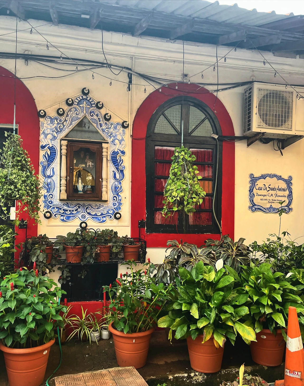 우리는 오후 다섯시쯤 길쭉한 고아의 폰타나스(Fontainhas)라고 불리는 아시아에서 가장 오래되고 큰 라틴 지구가 위치한 곳으로 이동했다. 나는 서둘러 예약한 숙소를 체크인하고 남편에게 빨리 나가자고 재촉했다. 해가 지기 전 다채로운 컬러들로 가득한 이 아름다운 동네를 한 시라도 더 빨리 더 많이 구경하고 싶었기 때문이다.