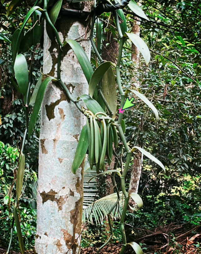 어떨 땐 풀더미 한가운데 풀을 가리키며 “저기 길쭉한 풀들은 레몬그라스야,” “저 초록색 풀더미는 카다멈이야.” 했고, 비슷하게 생긴 나무들 사이에 어떤 나무를 콕 집어 후추나무, 올스파이스 나무라며 알려주기도 했다. 또 이 농장 안에서 가장 비싼 향신료인 바닐라 빈들이 나무에 주렁주렁 매달려 있는 걸 보여줬는데 거긴 관광객들이 진입해서 따가지 못하게 펜스까지 쳐놨다. ‘갖고 싶다 너란 녀석!’ 평소에는 향신료들을 말린 형태나 분말 형태로만 보다 보니 색도 까맣거나 갈색이어서 원래 어떻게 생겼는지 추측도 안되었는데 이렇게 생명력(?)을 가지고 초록초록한 상태로 자라나는걸 보니 느낌이 색달랐다.