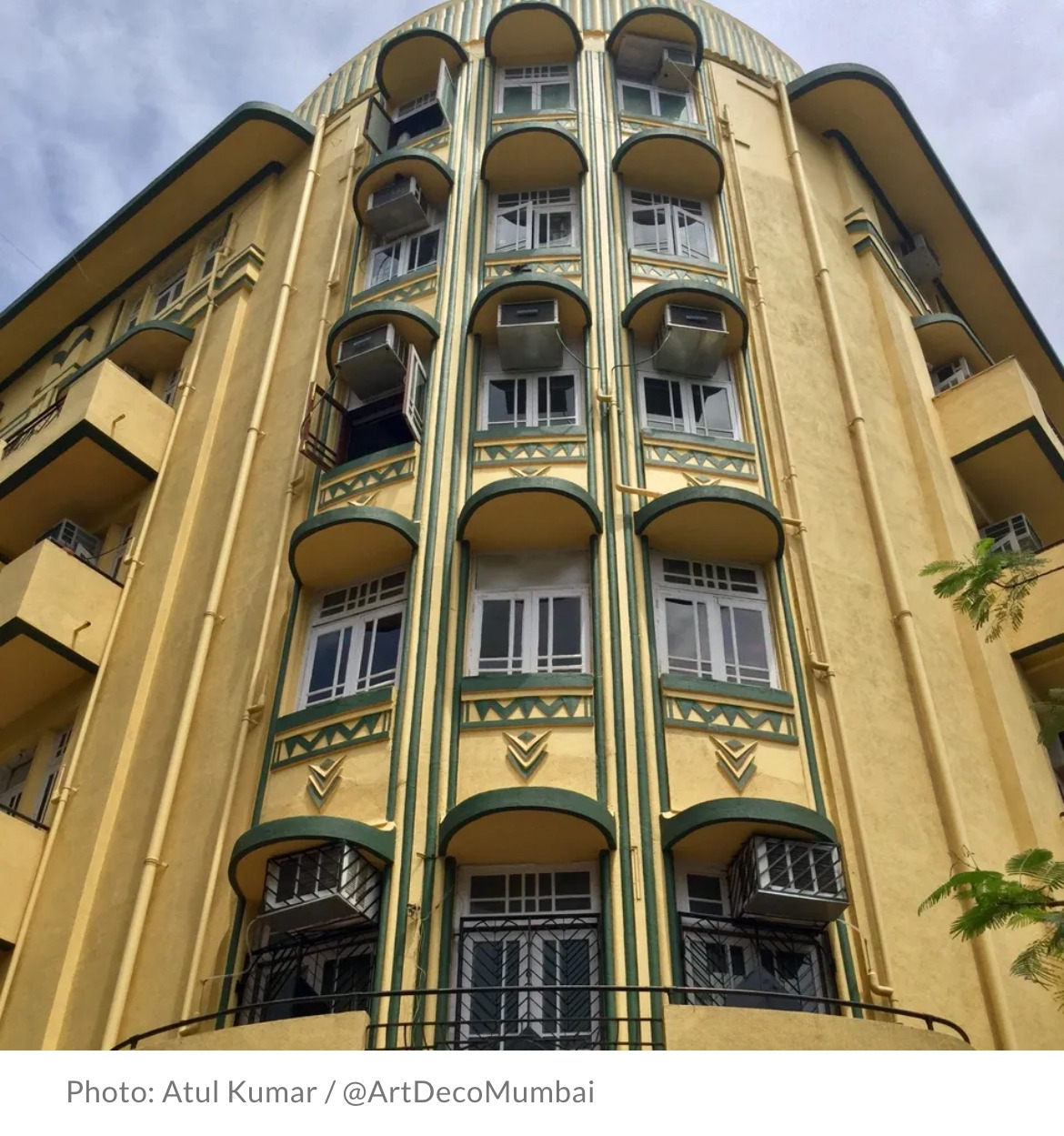도보를 따라 오벌 메이단의 서쪽에 위치한 입구로 나가니 주거, 상업 시설이 있는 구역이 나왔다. 이곳이 20세기 초에 마린 드라이브의 건설과 함께 재개발된 곳인데 이곳부터는 모던한 아르데코 양식을 볼 수 있었다. 동쪽보다는 훨씬 심플한 형태의 건물에 기하학적인 패턴이 들어간 알록달록한 건물들이 많이 있었는데 여기에도 인도의 터치가 들어가 인도-데코라고도 불린다고 한다. 흥미로운 사실은 뭄바이에서 이 구역을 잘 보존해온 덕에 세계에서 2번째로 (첫 번째는 마이애미) 가장 넓은 아르데코 구역으로 선정되었다고 한다.