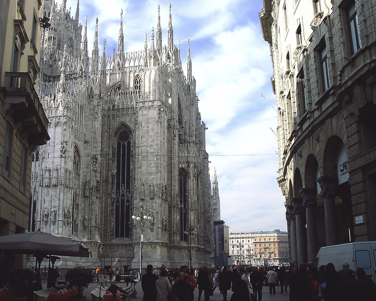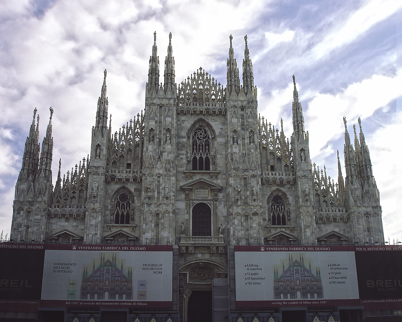 그나마 뒤쪽이 공사가 없어서 좀 제대로 보였는데, 가까이 가서 담기에는 일행 분들이 이미 반대 방향으로 출발을 해서 어쩔 수 없이 이 정도에서 찍고 멈출 수밖에 없었습니다. 첫 일정부터 즐거움과 아쉬움이 극명하게 대비되는 그런 상황이었는데, 그럼에도 공사 중인 밀라노 대성당을 보는 것도 흔치는 않은 경험이기 때문에 그걸로 위안을 삼아 봅니다.