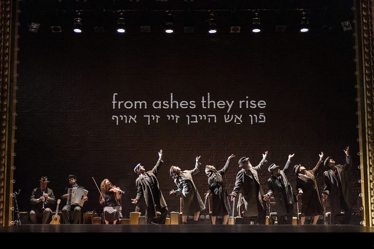 극 후반은 레믈과 극단이 폴란드로 돌아가 나치의 전횡이 절정에 달하던 시기에 연극을 통해 유대인에게 희망과 힘을 끝까지 전달하는 모습을 보여줍니다. 검열되었던 “빗속 장면”은 한 다락방 임시 무대에서 관객에게 선보여지고, 이후 모든 극단 멤버들이 죽음을 맞이하고 재로 돌아간다는 사실이 비유적으로 표현됩니다. 하지만 영혼으로 돌아온 레믈은 다른 결말이 가능할 것이라는 의지를 보이며 리프켈레와 만케, 즉 <복수의 신>의 두 주인공을 역사 속 죽음에서 도망치도록 돕습니다. 도망친 두 주인공은 자막 없이 이디시어로 빗속 장면을 재현하고, 이와 함께 극의 막이 내립니다.