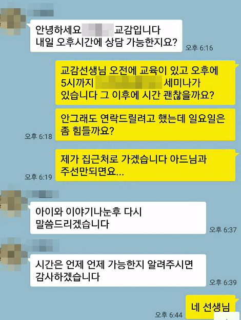 처음 보는 학생과의 상담은 직접적이어선 안된다. 오늘은 그냥 인사만 하고 헤어질 수도 있다는 여유를 가지는 게 중요하다. 결국에는 나는 들어주는 사람이고, 학생은 말하는 사람이기 때문이다. 다시 말해, 학생이 이야기를 편하게 할 수 있도록 잘 들어주기만 하면 된다. 어찌 됐건 부모님과 선생님께 풀어놓지 않는 보따리를 풀 수 있게끔 도와주는 게 내가 알고 있는 상담의 역할이다.