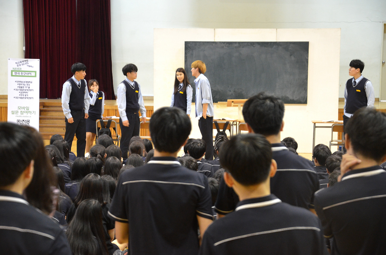 50분. 수업시간에 맞춰 공연시간도 맞췄다. 연극은 재미있었다. 최근 청소년이라면 누구나가 경험했던 사례들로 희곡을 썼고, 음향도 좋았다. 나머지야 소극장에서 볼 수 있는 소품과 조명 같은 것들이 아쉽긴 했지만 학교 강당이라는 것을 감안하면 훌륭했다. 이번 공연은 무엇보다 스토리 전개와 배우들의 연기 그리고 학생들의 호응만 맞아준다면 내가 원했던 교육 후기는 충분히 나올 수 있을 거라 생각했다.