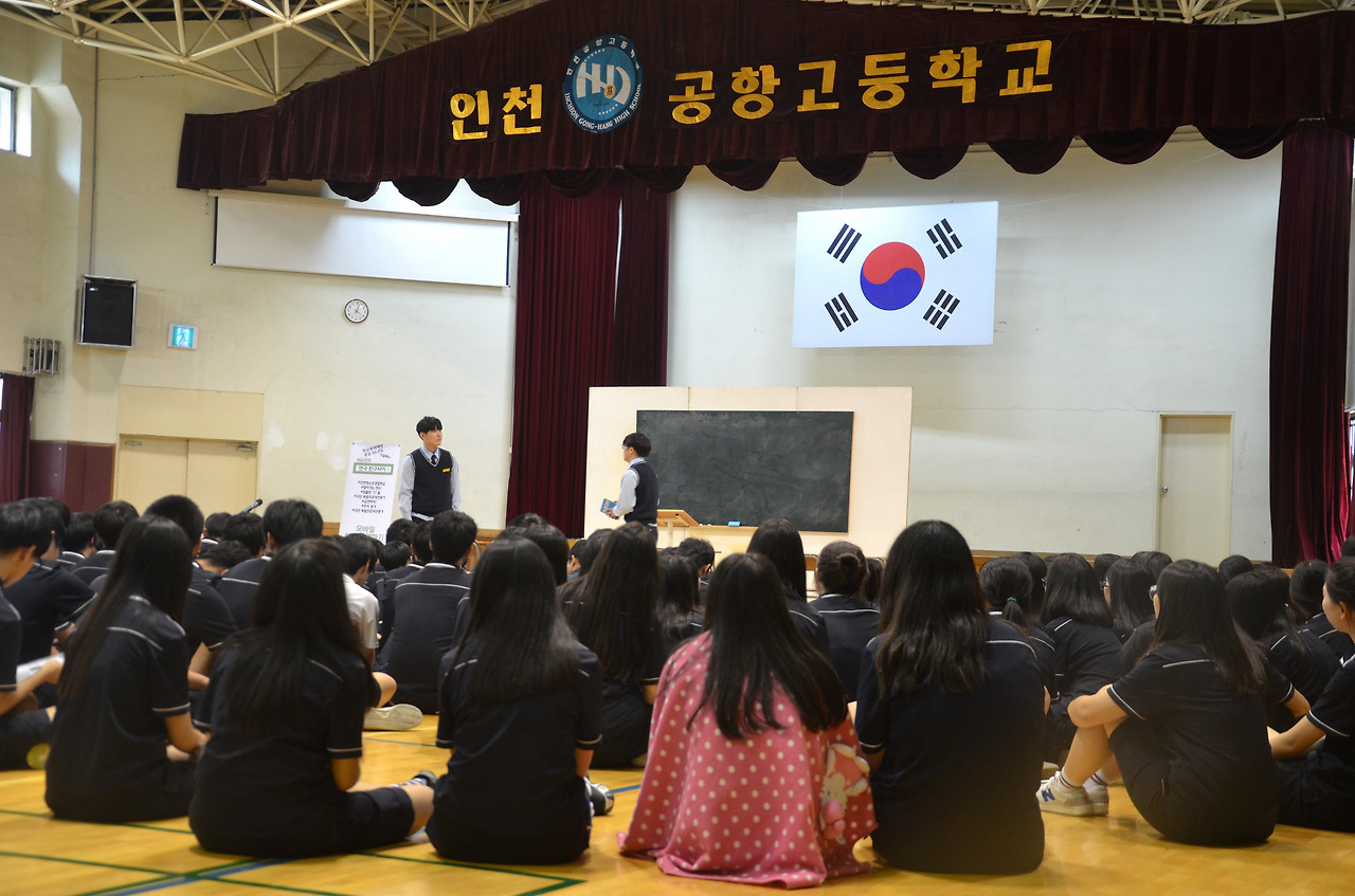 학생들의 관람석은 강당 바닥이고, 인원은 500명이나 되니 간격을 좁혀 앉았다. 단상에서 공연을 하겠다는 걸 무대 밑으로 하자고 제안했다. 기왕이면 학생들과 배우가 가깝도록. 마치 마당놀이처럼. 괜찮겠네요. 그럼 학생들이 더 몰입하고 더 재밌게 연극을 볼 수 있을 것 같아서요.