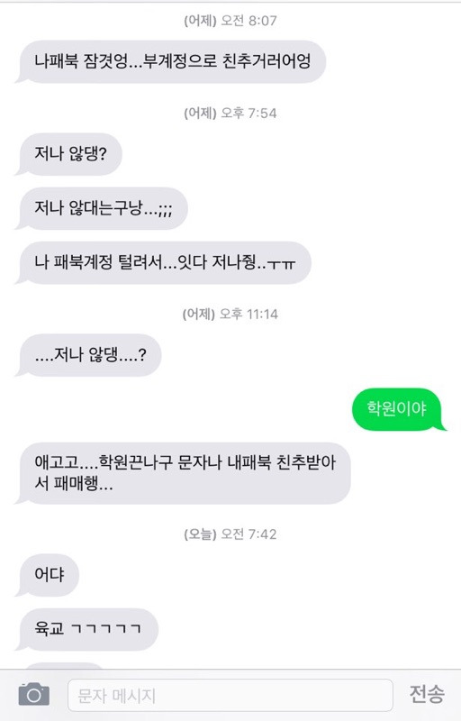 청소년의 언어는 외국어 수준을 넘어 거의 외계어 수준이다. 오죽하면 어느 어머님께서 자신의 딸이 요즘 친구들과 어떤 대화를 나누나 보려고 어렵게 비밀번호를 풀어 카**톡 대화를 봤더니 정작 문장을 이해하지 못해 곤욕을 치렀다는 이야기를 들은 적 있다. 그만큼 청소년의 언어는 어른들이 봤을 때 매우 이상한 건 사실이다. 하지만 아무리 이상해도 어느 정도여야 한다. 언어가 이상하여도 그들끼리는 '배려하는 글'이 있다. 언어가 이상하여도 그들끼리는 '정성을 다하는 글'이 있다.