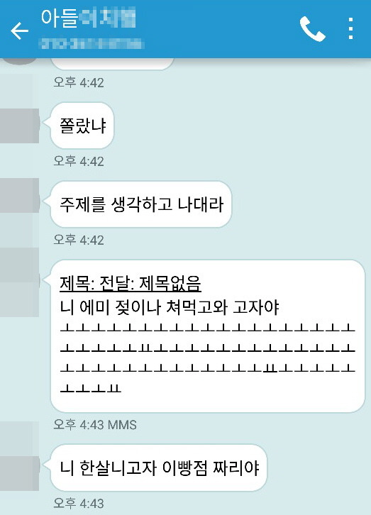 "당하고 있는 아이가 제 큰아들입니다... 초등학교 5학년이고요..."