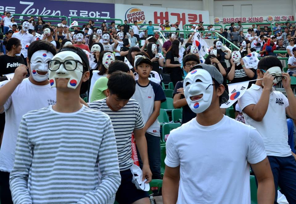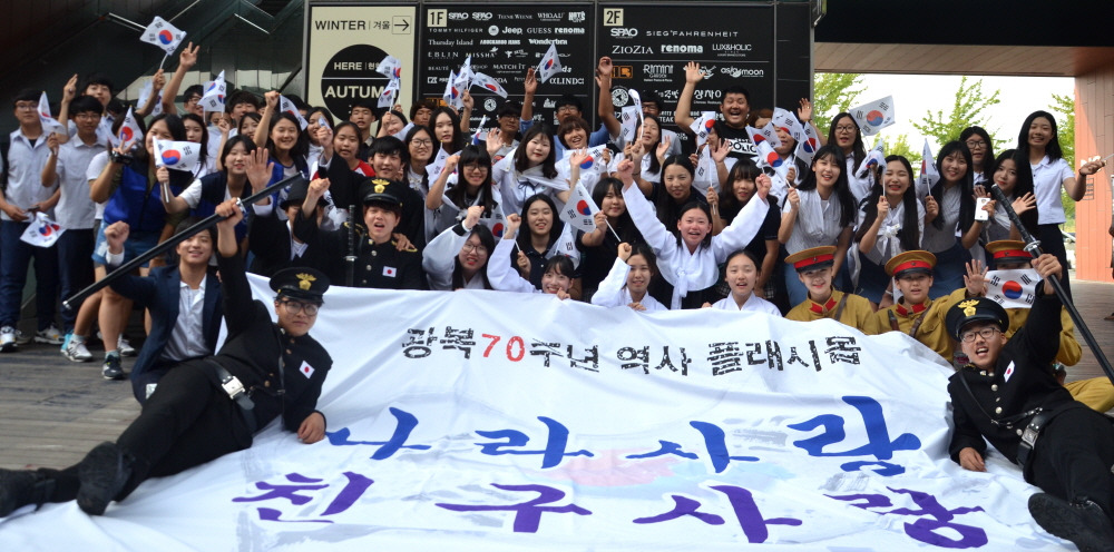 그래서 그러한 채널을 만들기 위해 6년을 시도했다. 2013년 첫 해, SNS에서 오케스트라 단원들을 모집하여 '아리랑' 플래시몹을 진행했다. 이듬해는 문학야구장에서 초청받은 필드 단상에서 애국가를 합창하고 '각시탈'(당시 모 방송에서 일제시대를 배경으로 독립운동을 주제로 했던 드라마가 '각시탈'이었다)을 일제히 쓰고 응원했다. 3년 후에는 일제시대 복장을 코스프레하여 시민들에게 '도시락 폭탄'같은 물풍선을 던지며 역사연극을 공연하기도 했다. 이 모든 것이 청소년. 우리 아이들의 생각에서 시작되었다. 그래서 내게 광복절은 늘 한 해의 전환점이자 청소년들의 무한한 잠재력을 직접 지켜보는 행운의 날이기도 했다.