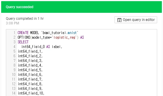 빅쿼리에 MNIST 데이터를 업로드해두었고