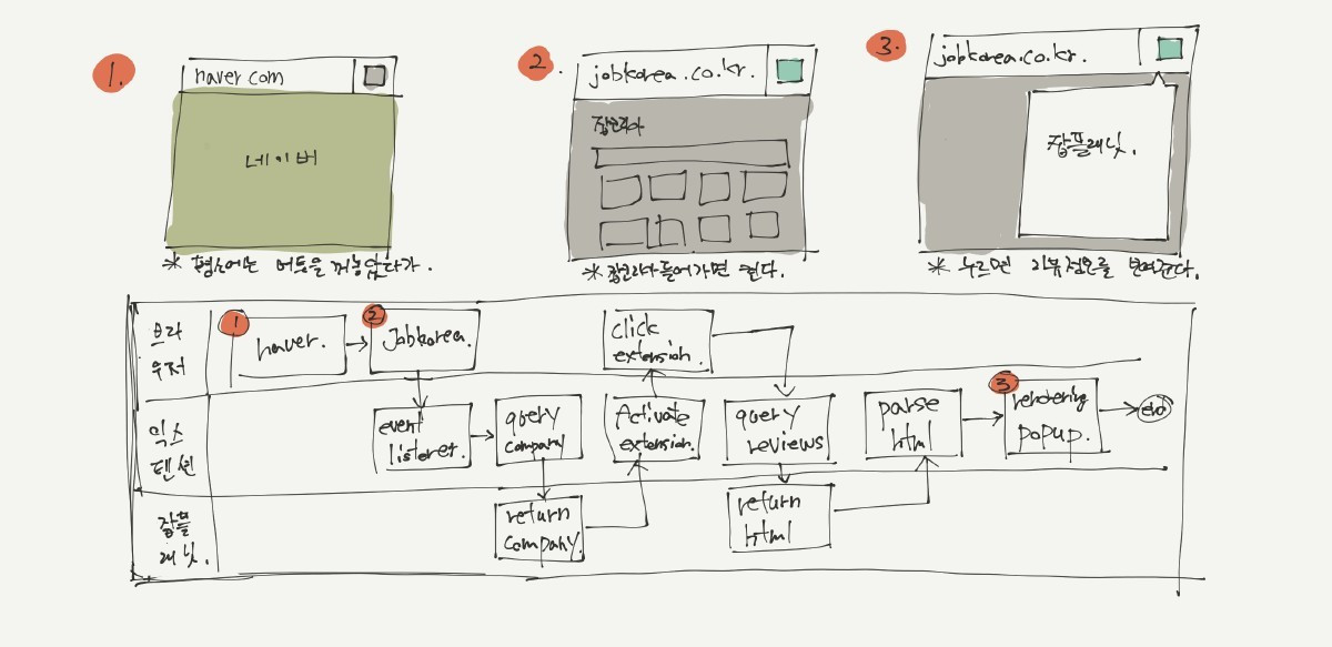 뒤에서 가만있다가 잡코리아 탭이 뜨면 그때 가서 잡플래닛 긁어와 뿅 하고 보여주면 된다.