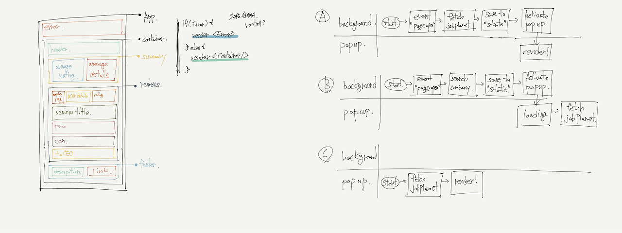이 익스텐션의 용도는 별도로 정보를 가공하는 것보다는 잡플래닛의 정보를 그대로 보여주는 것이면 충분하므로, UI도 거의 그대로 가져왔다.
