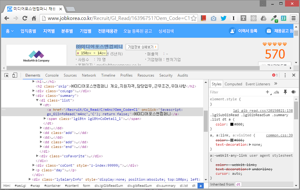 사실상 가장 큰 문제는 잡코리아가 회사에 대한 정보를 채용 정보에 붙여놓지 않았다는 점이다.