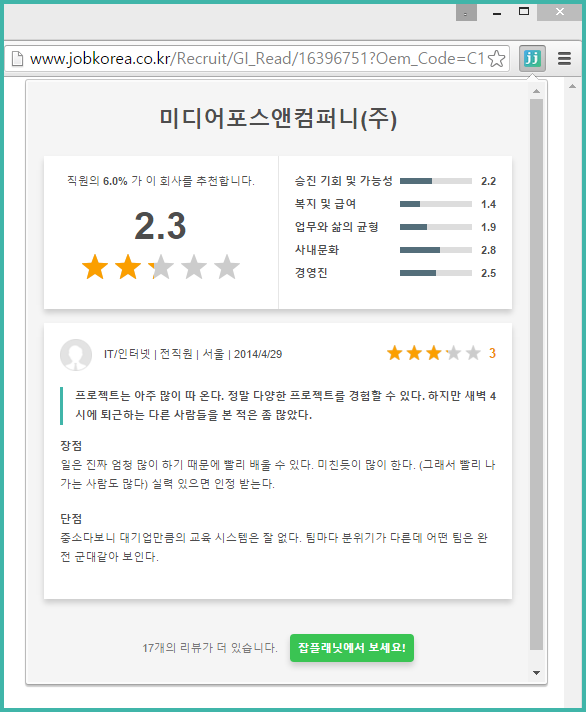 프로페셔널 구직자를 위한 채용 정보 + 회사 리뷰 조회 크롬 익스텐션