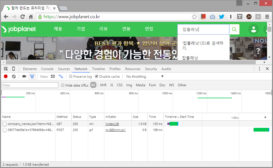 잡플래닛 사이트를 보니 검색창에 글자를 써넣을 때마다 서버와 통신해 json으로 회사 정보를 받고 있었다.