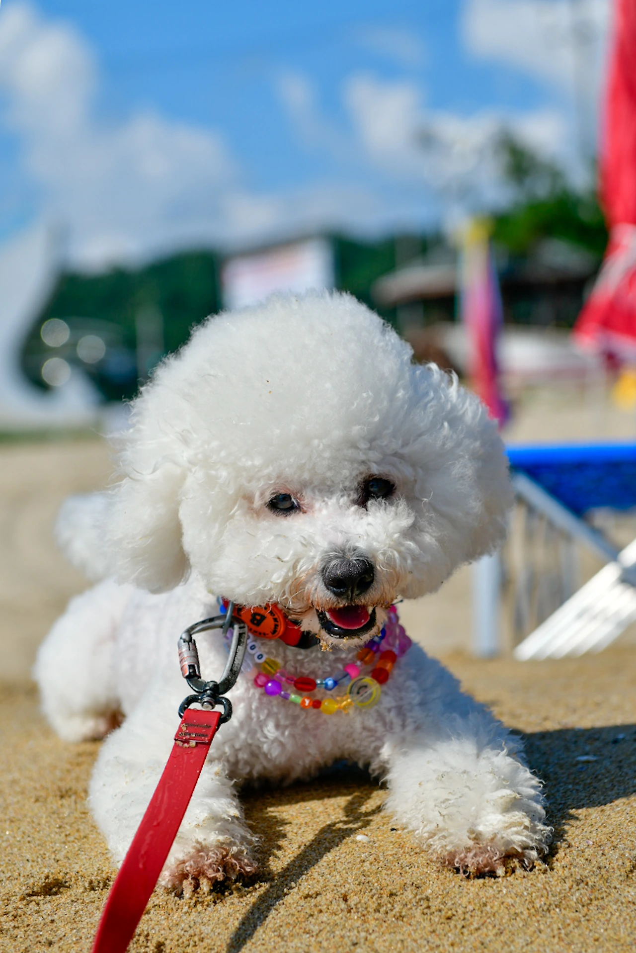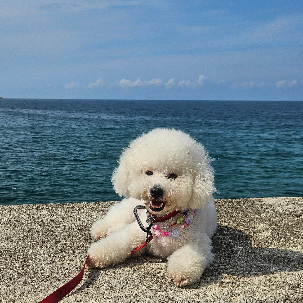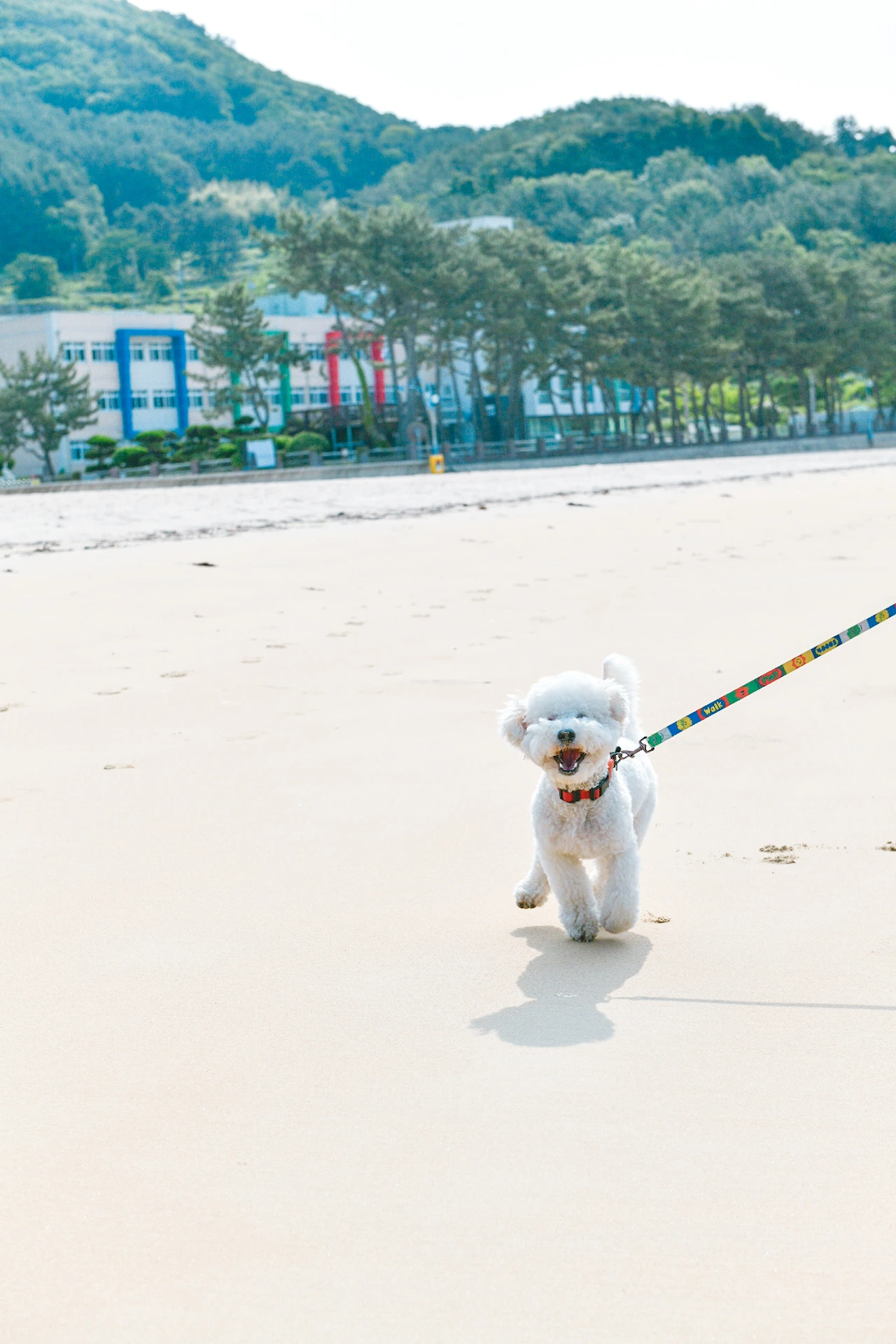 기쁨이는 작년에 처음으로 바닷가를 경험했다. 철썩이며 왔다가 사라지는 파도가 신기한지 몇 번이고 모래사장을 뛰어다니면서 구경을 했다. 개들이 헤엄을 치는 건 알고 있지만, 아무래도 어린 강아지이고 놀랄까 봐 우리는 구명조끼까지 입히고 용감하게 바닷물 안으로 뛰어들었다. 땅이 발에서 멀어지자 몹시 당황하던 기쁨이는 눈이 평소보다 배로 커져서 허둥지둥 헤엄을 쳤는데 이리저리 넘실거리는 물에 어쩔 줄을 모르다가 해변에 가면 땅을 디딜 수 있다는 것을 깨달아버린 녀석. 그 이후로 기쁨이는 물에 함께 들어가기만 하면, 해변 방향을 향해 죽어라 네 다리를 열심히 움직이기 시작했다. 그러고 보니 주변의 강아지들 중에서 정말 물이 너무 좋아서 헤엄을 치는 아이는 한참 멀리 있는 곳에서 첨벙거리는 레트리버뿐이었다. 나머지 소형견들은 물놀이가 아닌 그야말로 생존게임 중이었다. 짭짤한 소금물 때문인지 기쁨이는 끊임없이 찬물을 들이켠다.