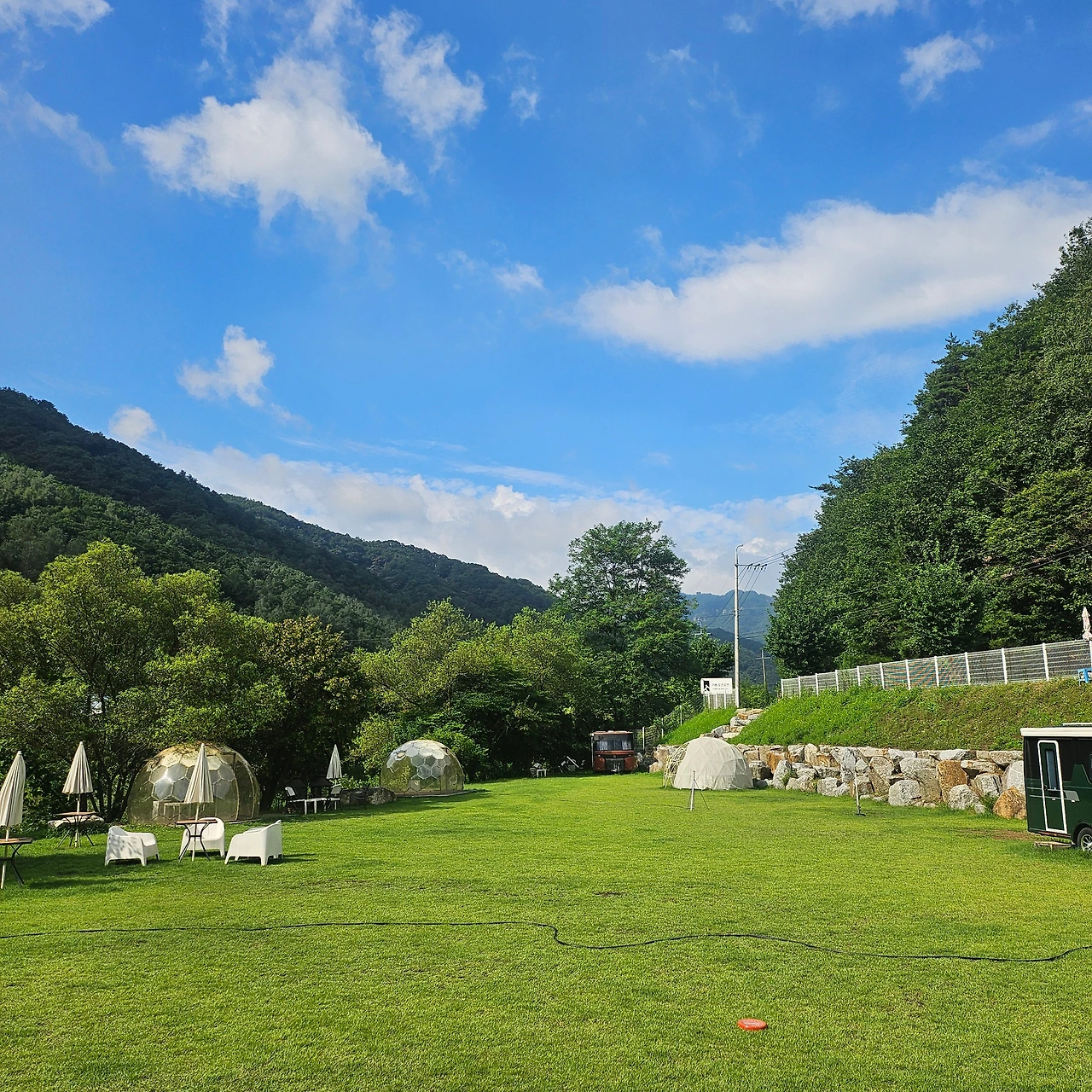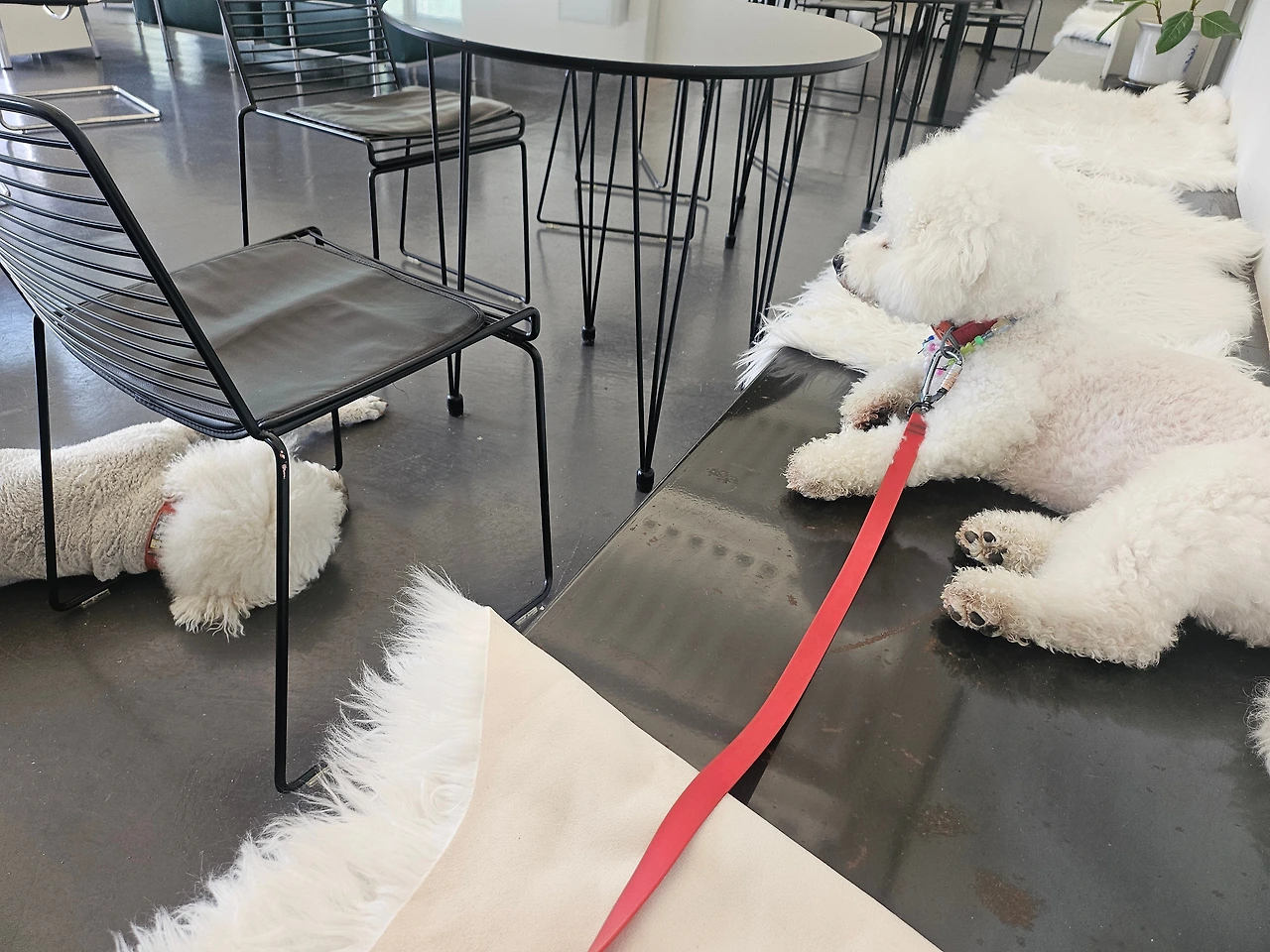 강아지와의 여행은 사실 불편한 점이 많다. 강아지동반이 되는 곳을 찾아야 하고, 설사 동반이 된다 하더라도 실내의 가능여부를 늘 따로 전화로 물어봐야만 한다. (기껏 찾아갔더니 밖에 있으라고 한 적이 한두 번이 아니므로.. 이 날씨에 구이가 될 순 없다.) 이번에 원주에서 찾아낸 곳은 그야말로 너무나도 완벽해서 남편도 나도 연신 고개를 끄덕했던 곳이다. 게다가 커다란 상주견도 있다!