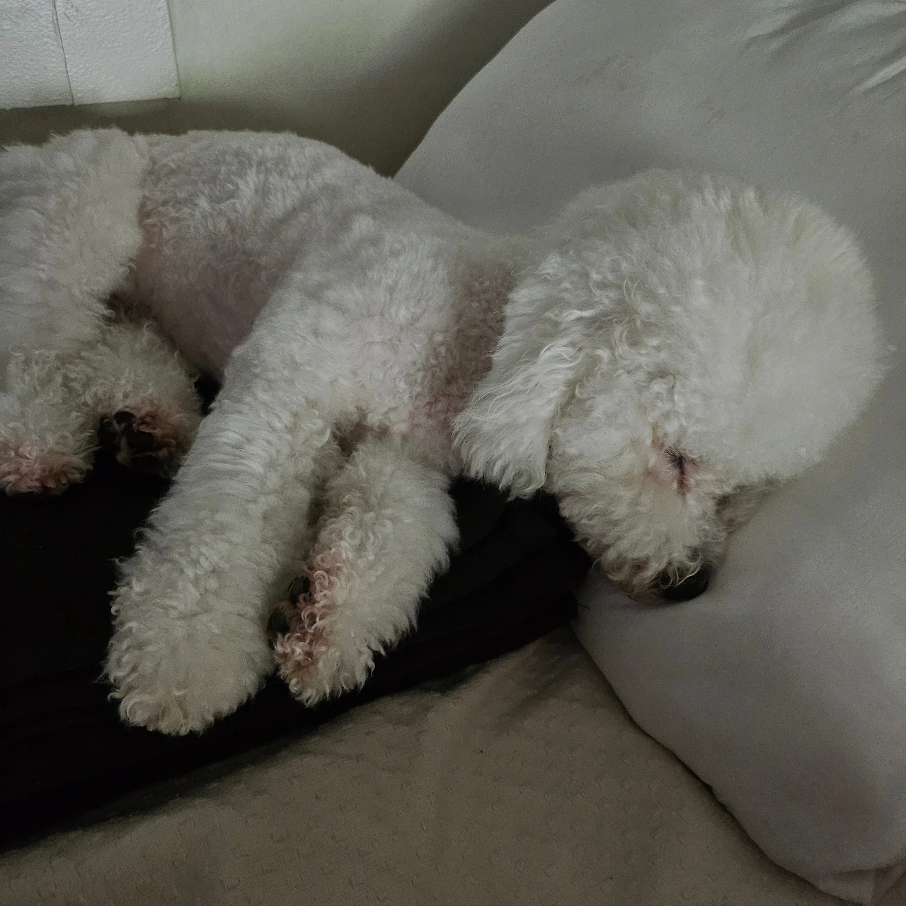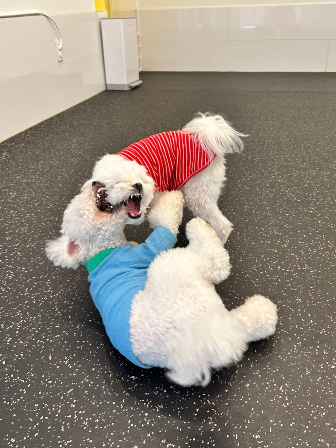 어느 순간부터 검은 옷을 입은 남자들을 노려보고 특히 밤에 구석에서 담배를 피우면 두 눈으로 그들을 뚫어져라 바라본다. 가까이 올라치면 갑자기 뛰어나오며 왈왈왈왈!! 짖어대는데.. 여기서 비숑의 짖는 소리가 어느 정도인지 아시는 분이 계시는지? 세상 동글동글하게 생긴 이 아이들은 푸들이나 말티푸와는 달리 뼈대가 크고 흉통이 넓어서 짖을 때면 그야말로 중형견 소리가 난다. 게다가 기쁨이는 작지도 않은 8킬로 이상의 빅숑이기 때문에 이 녀석이 갑자기 짖으면 당황하시거나 깜짝 놀라시는 분들이 많다. 정말 다행인 건, 여자와 어린아이들은 예외라는 거다.