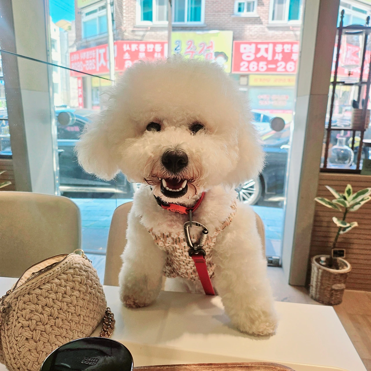 가장 심했던 이 3가지를 제외하고도 안돼! 라던지 몸으로 블로킹을 해가며 훈육을 하는 때는 많다. 큰 강아지에게 이유 없이 짖거나, 아니면 혼자 삐져서 나 혹은 남편에게 으르렁한다거나, 콘센트마다 물어뜯어놓거나, 벽지 뜯기를 몰래 시도하거나 등등. 그때마다 나름 단호하게 옳지 않다는 것을 표현하지만, 하면서도 이게 맞는 건지 잘 모를 때도 있다. 그럴 때면 유튜브나 우리보다 훨씬 오래 반려견을 키우신 분들에게 조언을 구한다. 하지만 무엇보다 분명한 것은, 잘못된 행동을 했을 때면 아무리 귀엽고 사랑스러운 강아지라도 훈육을 해야 한다는 것이다. 짧지만 아주 단호하게. 강아지는 동물이고 동물은 아무래도 본능에 충실하기 때문에, 언제 돌발행동을 할지 모를 일이다. 그래서 [ 이 강아지 만져도 돼요?] 라거나 [이 강아지 물어요?]했을 때, 우리 애는 물지 않는다고 확신해서는 안 되는 것이다. 정말 키우면 키울수록 어린 유아를 가르치는 느낌이 든다. 과거에 어린 학생들이 서로 치고받고 싸운 뒤에 눈물이 그렁그렁 한 채 내 앞에 서있을 때의 표정과 눈물이 반짝반짝 고인 채로 오도카니 앉아서 나를 바라보는 기쁨이의 표정은 몹시 똑같다. (아이 키우시는 분들이나 반려인들은 아시겠지만 이때 모습은 정말이지 너무너무 귀엽다..) 그 앞에서 단호한 표정을 유지하는 것이 힘들기는 하나 잘못한 행동을 알려줘야 하기에 어쩔 수 없다.