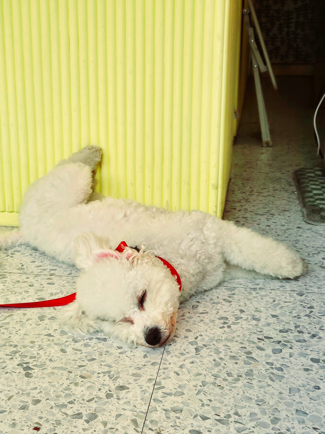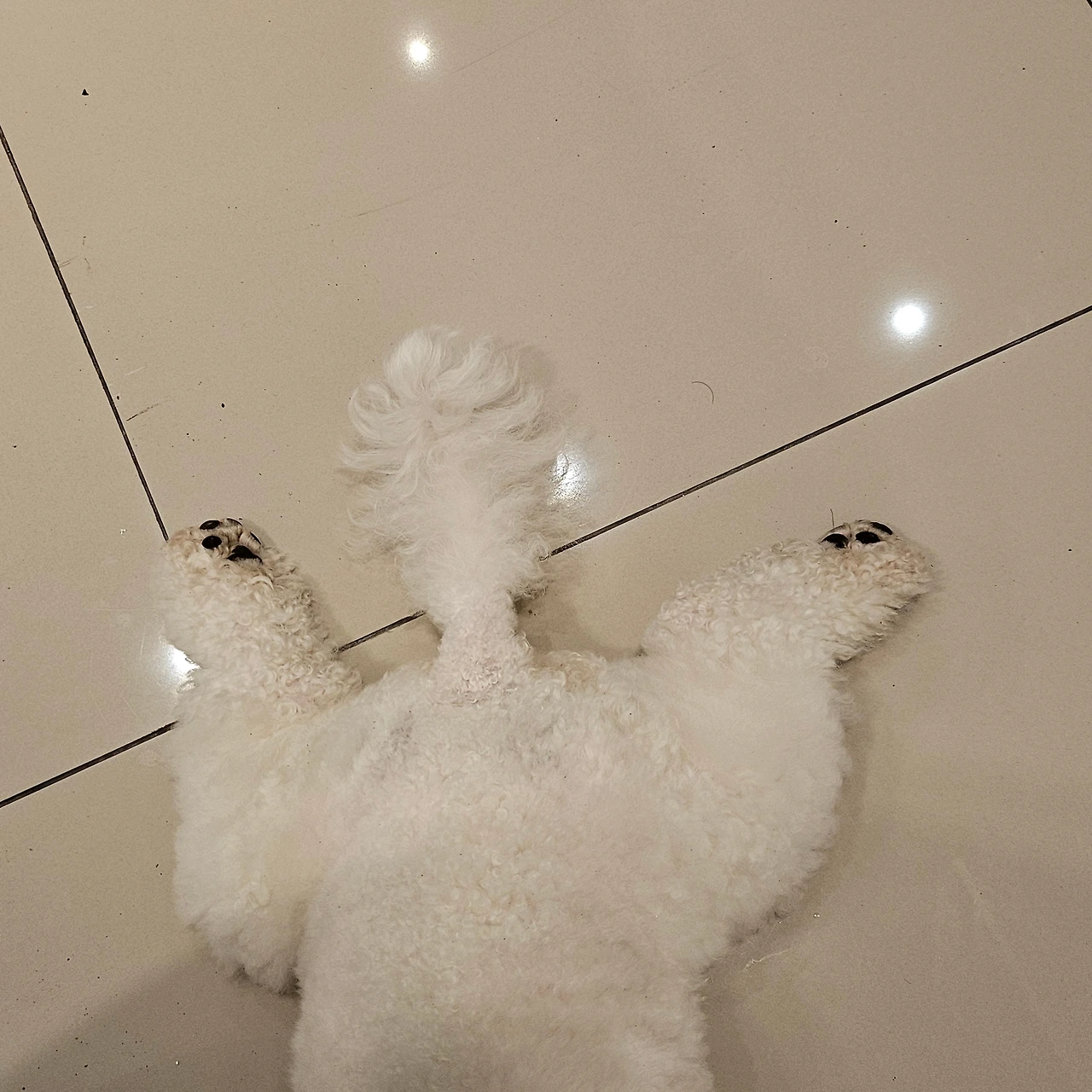 우리 기쁨이는 예방 주사의 부작용도 이겨내는 아이였다. [쉬만 뉘고 올게요! 쉬를 내내 참았을 텐데..]하며 남편이 목줄을 딸깍 걸어주기가 무섭게 우리의 슈퍼파워 흰둥이는 무려 300m를 50m 달리는 속도로 질주를 하기 시작했다. 한껏 뒤로 젖혀진 귀와 활짝 벌어진 입, 그리고 유연하게 바깥쪽으로 뻗어나가는 네 다리까지. 고작 3시간 만에 모든 회복이 끝나버린 기쁨이는 남편을 끌고 동네를 이리저리 질주한다. 남편이 정말 이를 악물고 뛰어가는 모습이 보일 때마다 어찌나 웃기던지. 놀이터까지 계단을 뛰어올라가고 내려오고 다시 내달리고 하는 통에 남편은 마치 솜만 빵빵한 인형마냥 자신의 의지와는 상관없이 흩날렸다. 혹시나 알레르기 반응이든 뭐든 부작용이 나타날까 봐 걱정했는데 기우였다. 이렇게나 건강한 우리 강아지. 비록 아직 3번의 주사가 더 남아있지만! 엄마 아빠는 걱정하지 않는다! 우선 엄마의 척추건강부터,, 하하