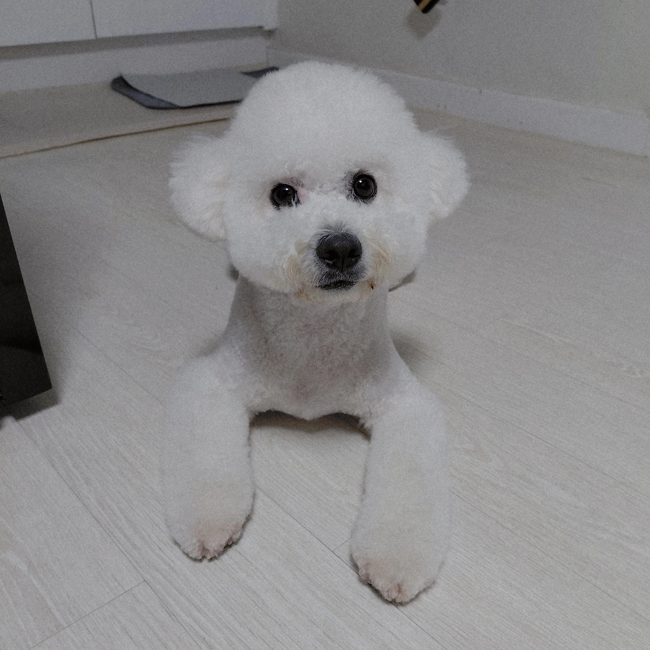 거의 1년 만에 기쁨이는 전문가의 손길을 거쳐 말끔한 모습이 되었다. 털이 잔뜩 오른 모습도 너무 귀엽지만, 자꾸만 속에서 엉키는 털을 내가 버티지 못해 전문가분께 엉킨 털관리와 미용을 부탁드렸다. 세상 슬림해진 우리 기쁨이. 대체 8.5kg이라는 무게는 어디에 분포되어 있는 무게인지 도통 모르겠다. 분명 무게는 나가는데 다들 왜 그만큼 나가는지 모르겠다는 분들이 대다수다. (기쁨이는 근수저였던 것인가!!)
