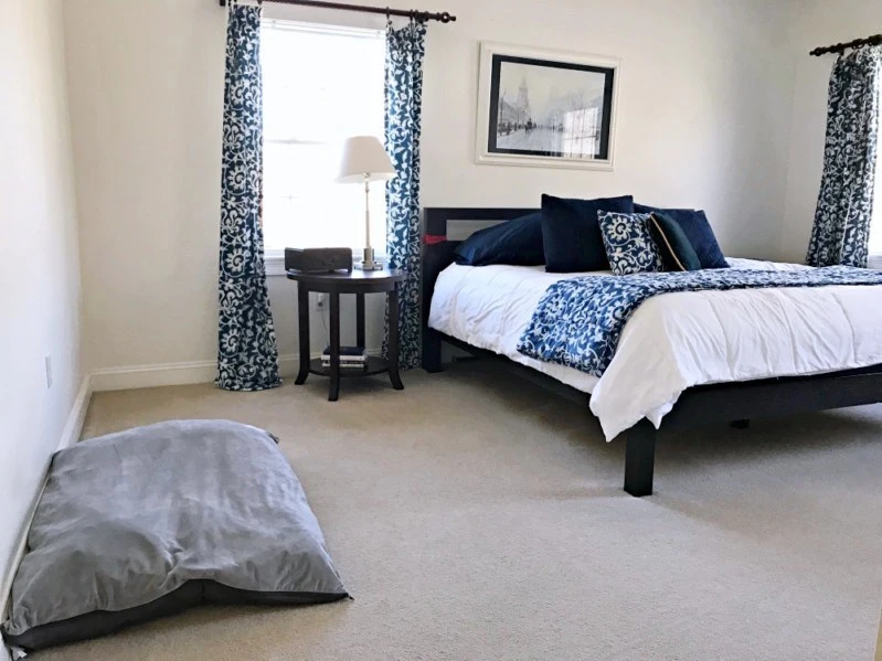 제 침대의 바로 옆에는 전 안내견 Milo의 침대가 있었어요. Milo는 첫 안내견이어서 그런지 지금도 생각이 많이 나요. 재미있는 추억이 많았죠. Milo가 침대 옆에서 잠을 자면서 코도 많이 골았어요. 여전히 그리운 기억을 떠올리게 하는 특별한 공간이에요. - Meg