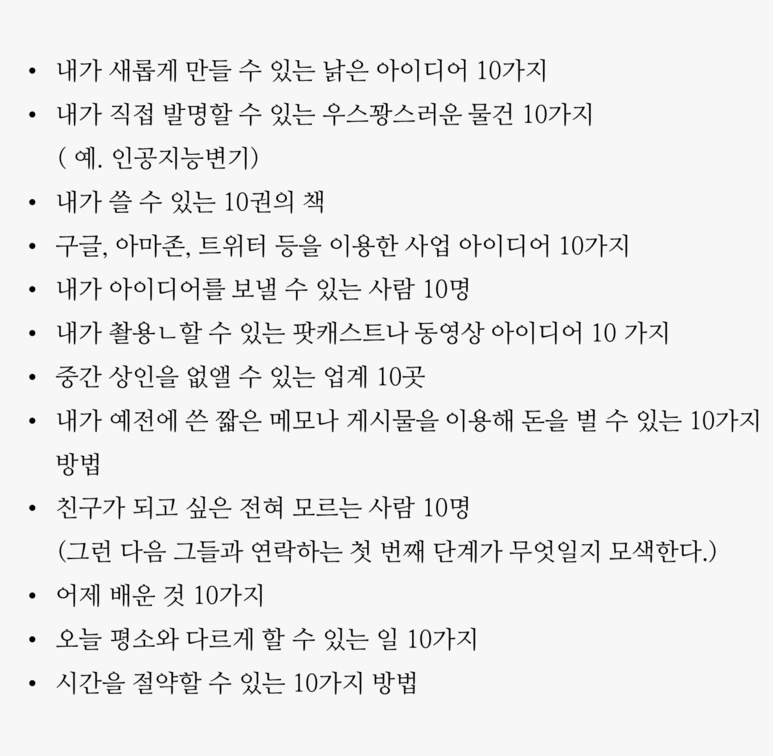 2 매일아침 수첩에 아이디어 10가지를 적는 습관을 들여라.