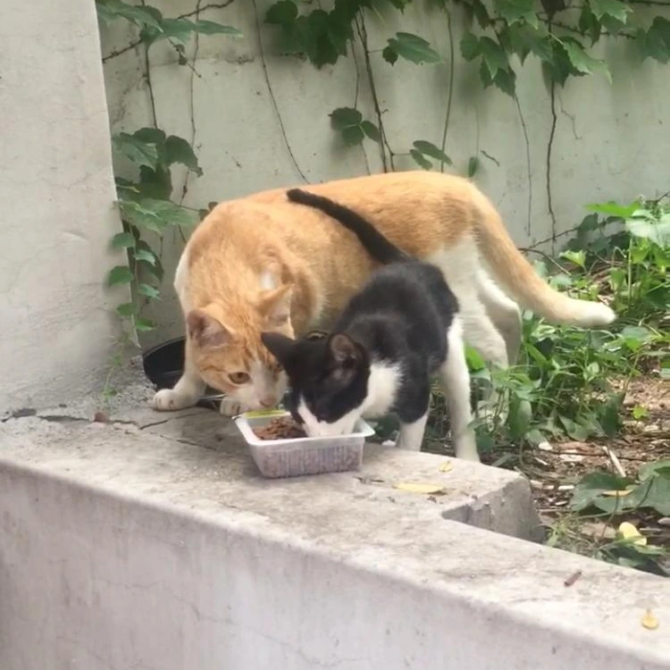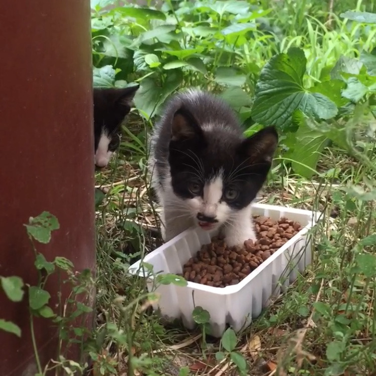 박스 뒤에서 우렁차게 울어대던 아기 고양이, 첫눈에 반한 주인공이기도 하다. 꼭 콧수염이 찰리 채플린 같아서 이름을 '찰리'라고 붙여주었다. 찰리가 혼자 박스 뒤에서 애처롭게 울었던 그 날 이후, 찰리는 부모님으로 추정되는 얼룩 고양이와 함께 나타난 적이 있다. 부모님을 찾았구나! 하고 내심 안도했다. 이후 부모님과 함께 살아갈 줄 알았는데 엄마 고양이는 자취를 감추었다. ‘나 없어도 잘 살아갈 수 있지?’ 하고 타지에 자식들을 데려다준 느낌이었다. 그러기에 자식들이 너무나도 어렸지만 말이다. 이후 찰리는 형제들로 추정되는 고양이 몇 마리를 화단에 함께 데려왔다.