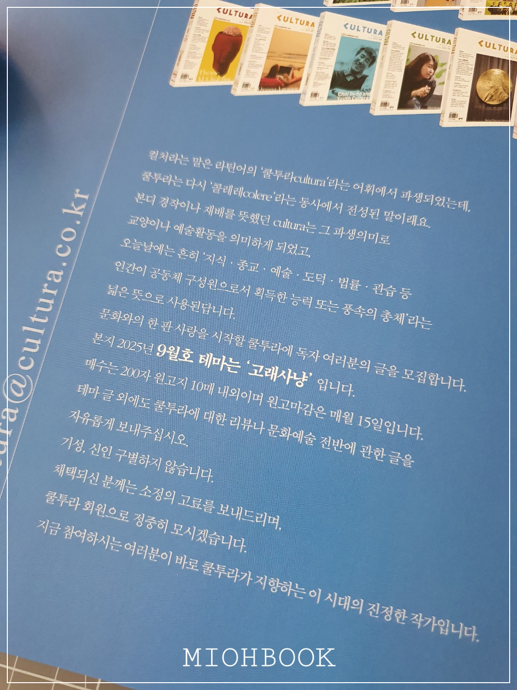월간 문화전문지 <쿨투라>는 매월 다양한 테마로 만날 수 있는 ‘월간 문화전문지’입니다.