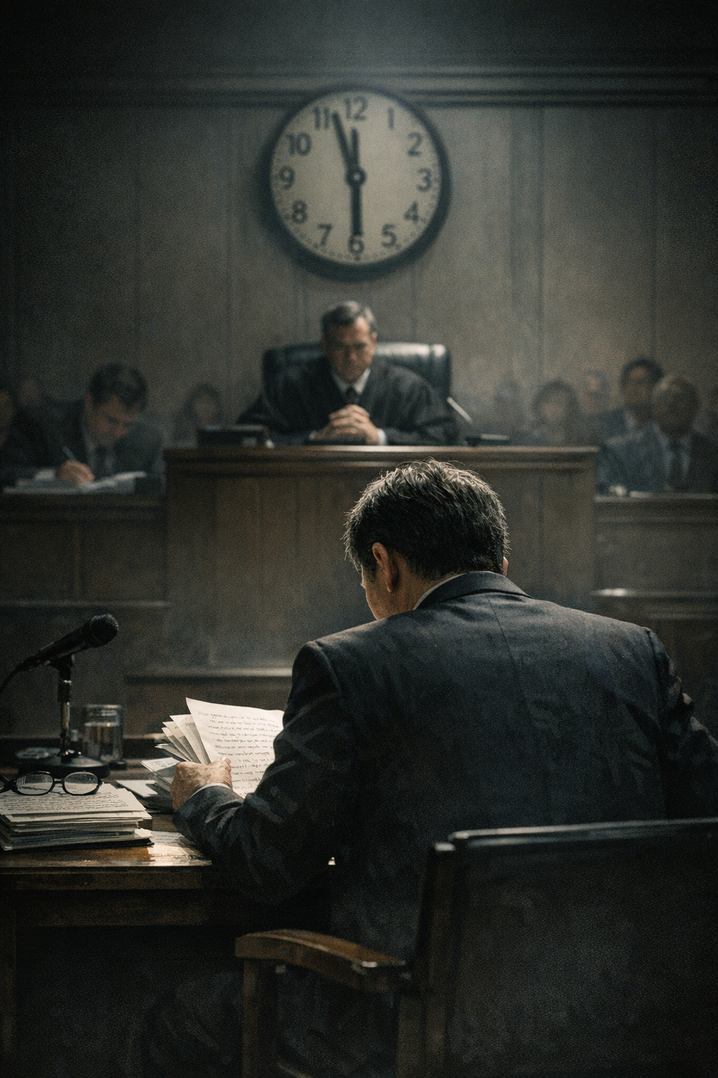 재판은 1년 전부터 시작되어 있었다. 다만 그날, 모두가 그것을 분명히 자각했을 뿐이다. 자정이 가까워진 시간, 법정의 공기는 낮보다 더 단단하게 굳어 있었다. 판사도, 검사도, 방청석도 모두 지쳐 있었지만, 피고인만은 아직 말을 준비하고 있었다. 그는 책상 위에 놓인 원고를 한 장 한 장 넘기며, 숨을 고르고 있었다.