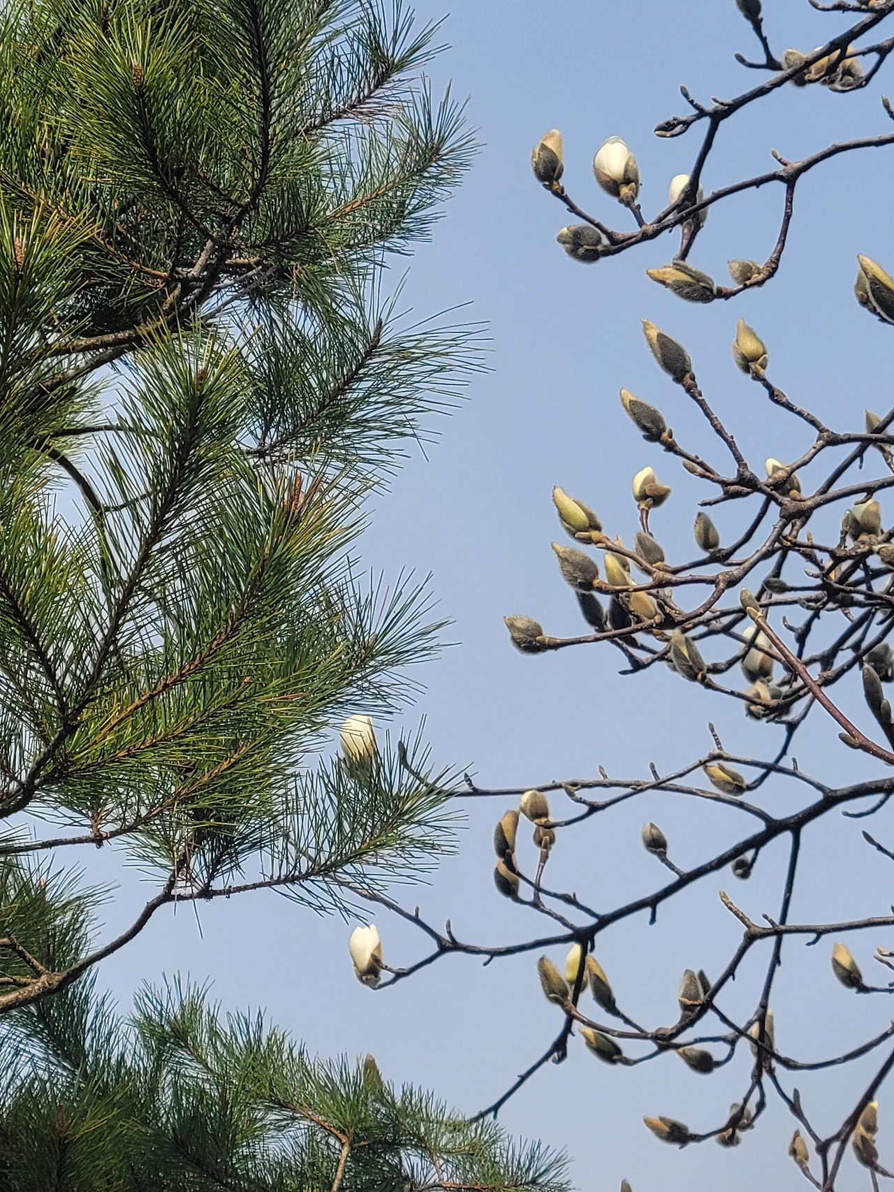 ♤ 소나무와 목련 꽃봉오리, 촬영: 임미옥
