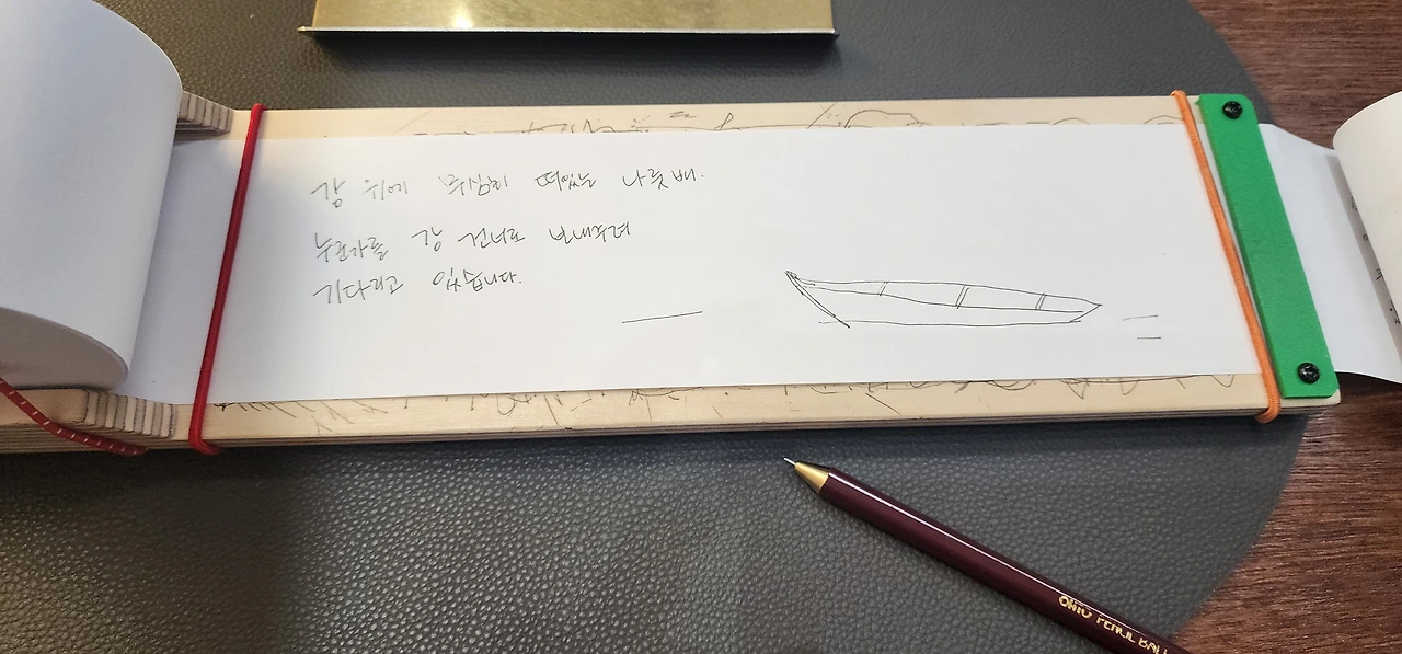 멋진 방명록에 자주 등장했던 나룻배와 한 글자 남겨보기도 했어요.^^