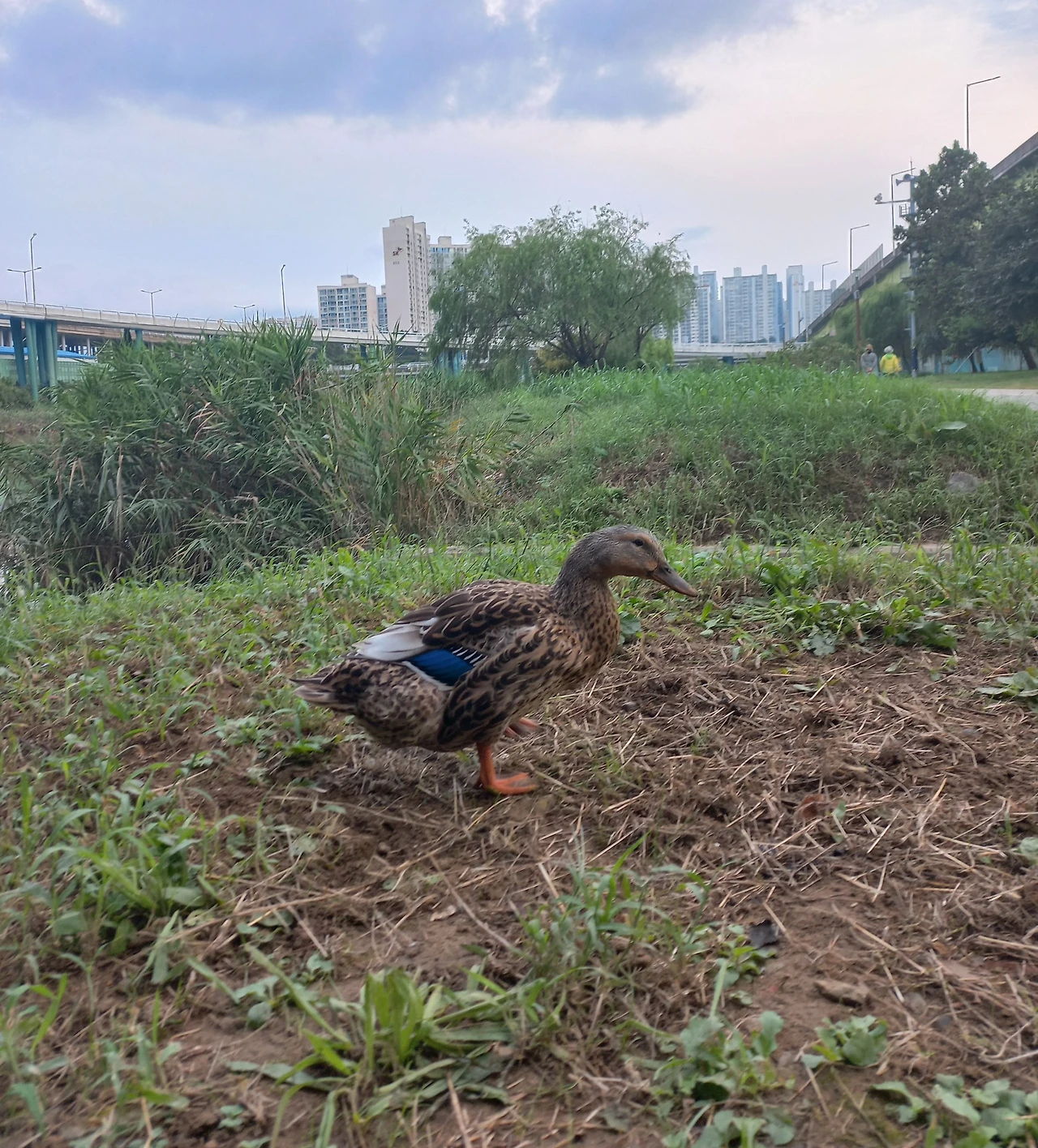 화려한 청둥오리는 수컷이고 이 연한 갈색의 수수한 청둥오리가 암컷이구나. 보송보송한 털로 보아 아직 완전히 자란 것은 아니다. 주위에 엄마 청둥오리나 형제자매가 있나 살펴보았지만 아무도 없었다. 그러면 이제 막 독립을 한 어른이 되어가고 있는 청둥오리일지도 모르겠다.