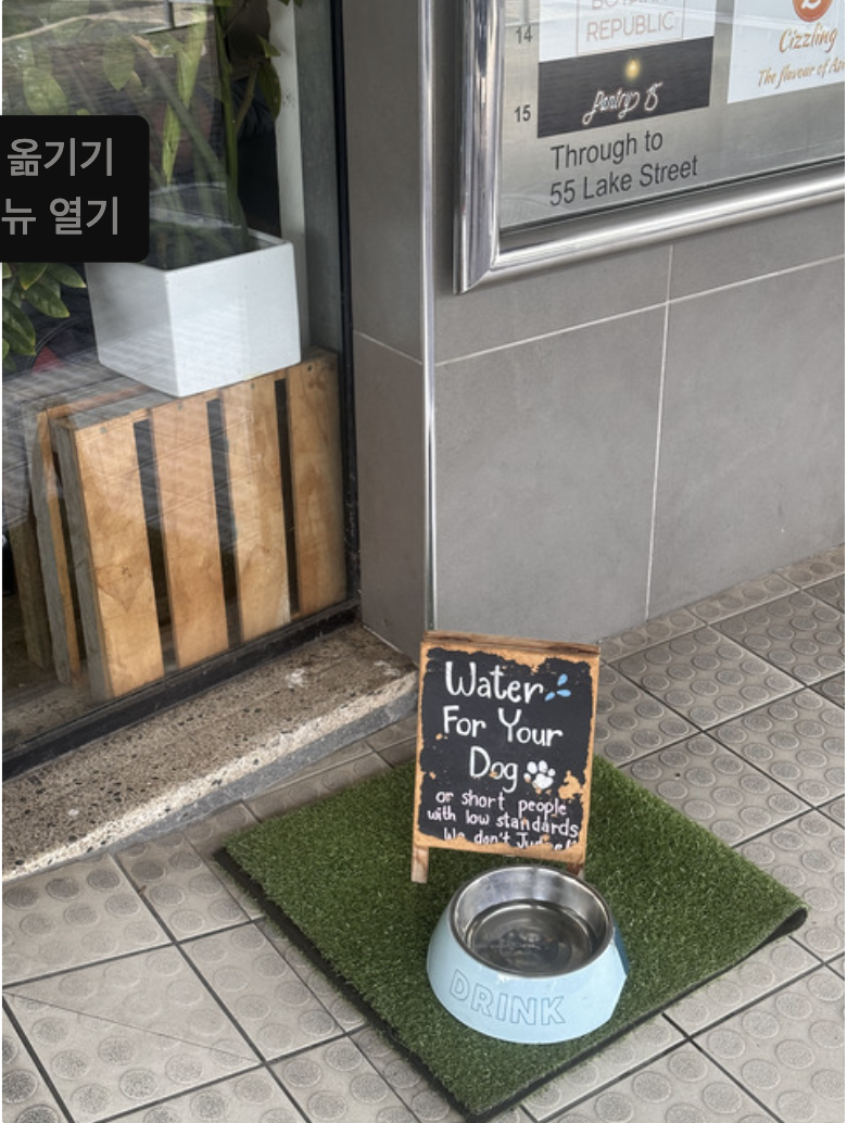 공원에는 강아지 배변 봉투가 비치되어 있고, 식수대는 강아지가 마실 수 있도록 낮은 높이로 설치되어 있어요. 심지어 'Doggy Beach'라고 불리는 해변도 있습니다.ㅎㅎ 테라스가 있는 카페나 레스토랑에서는 강아지를 위해 물그릇도 준비되어 있어요.