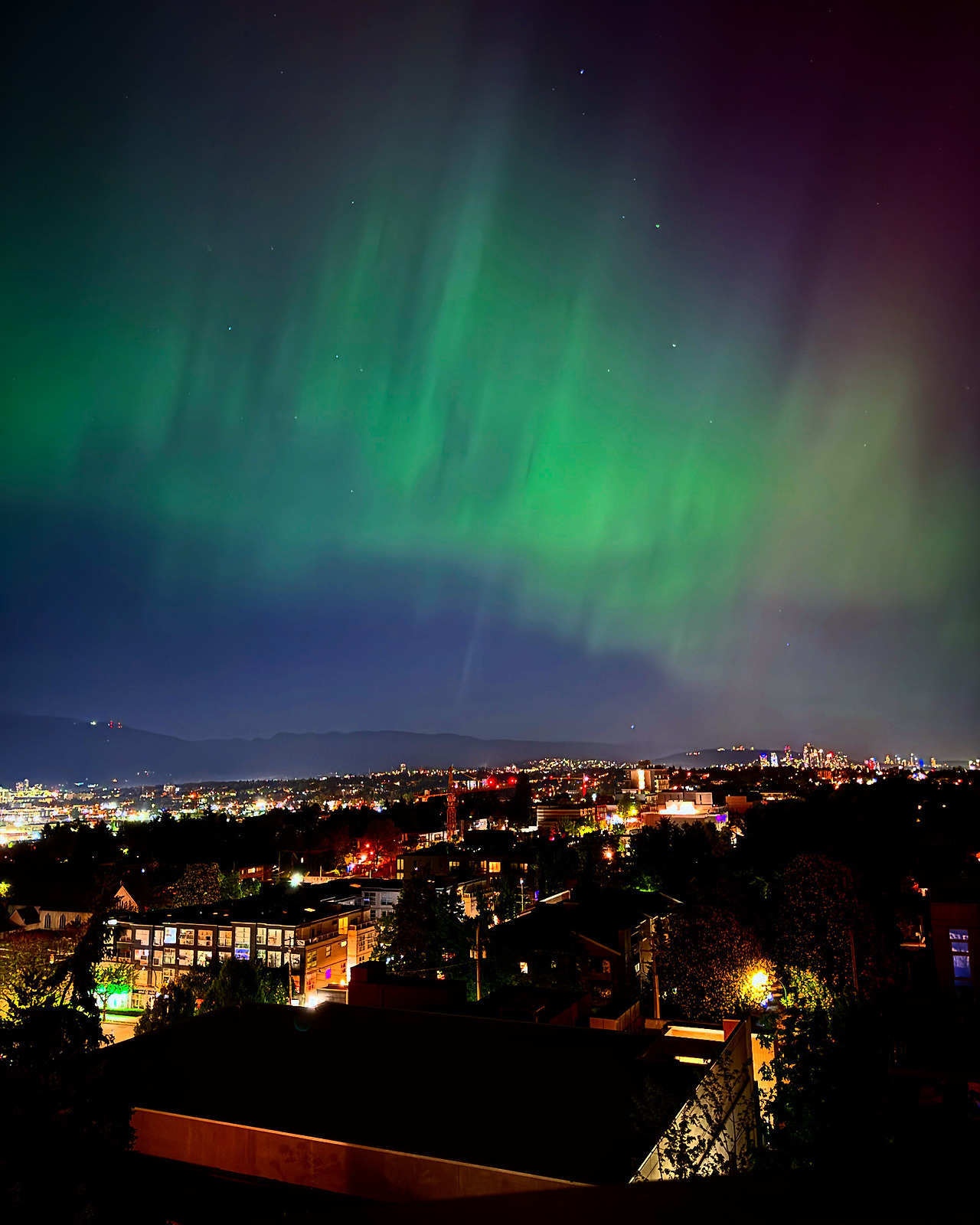 원래는 오로라를 옐로나이프같은 지역에 가서 볼 수 있는데 갑자기 태양 흑점이 크게 폭발하면서 캐나다 전역에서 오로라를 볼 수 있었어요. 집 옥상에서도 잘 보여서 새벽에 나가서 한참을 보고왔는데 정말 아름답고 신기하더라고요.