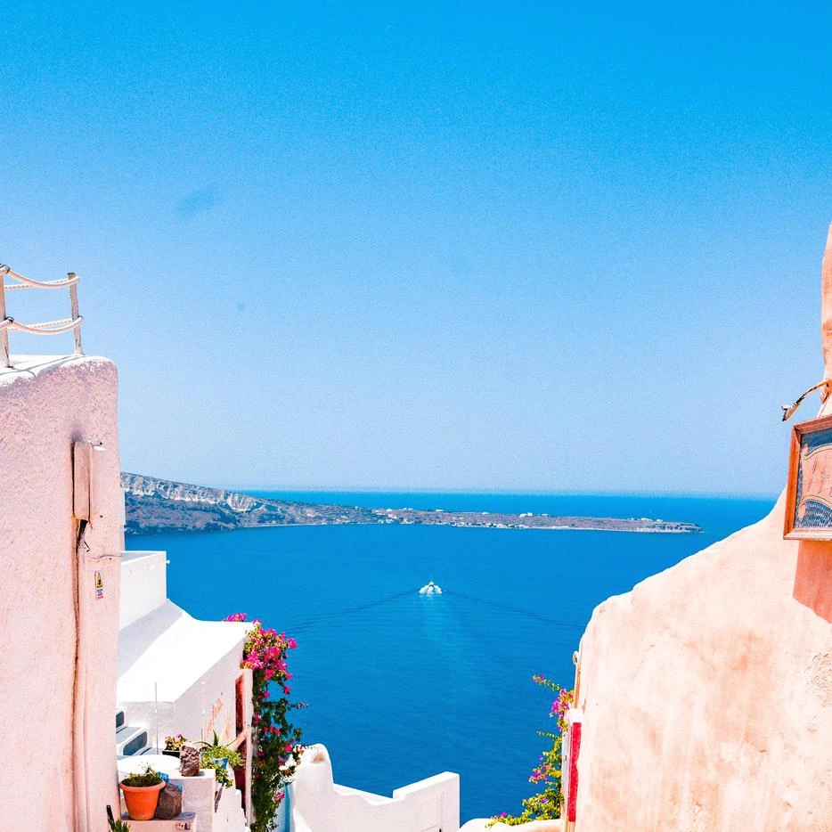 제가 몇 가지 키워드를 드릴 테니 연상되는 브랜드를 맞히시면 됩니다. 파란색과 하얀색이 어우러져 있고, 그리스 산토리니 풍경, 흰 원피스를 입은 여자가 있다면 어떤 브랜드를 연상할 수 있을까요? 그리고 혹시 어떤 노래가 떠오르시지는 않나요?