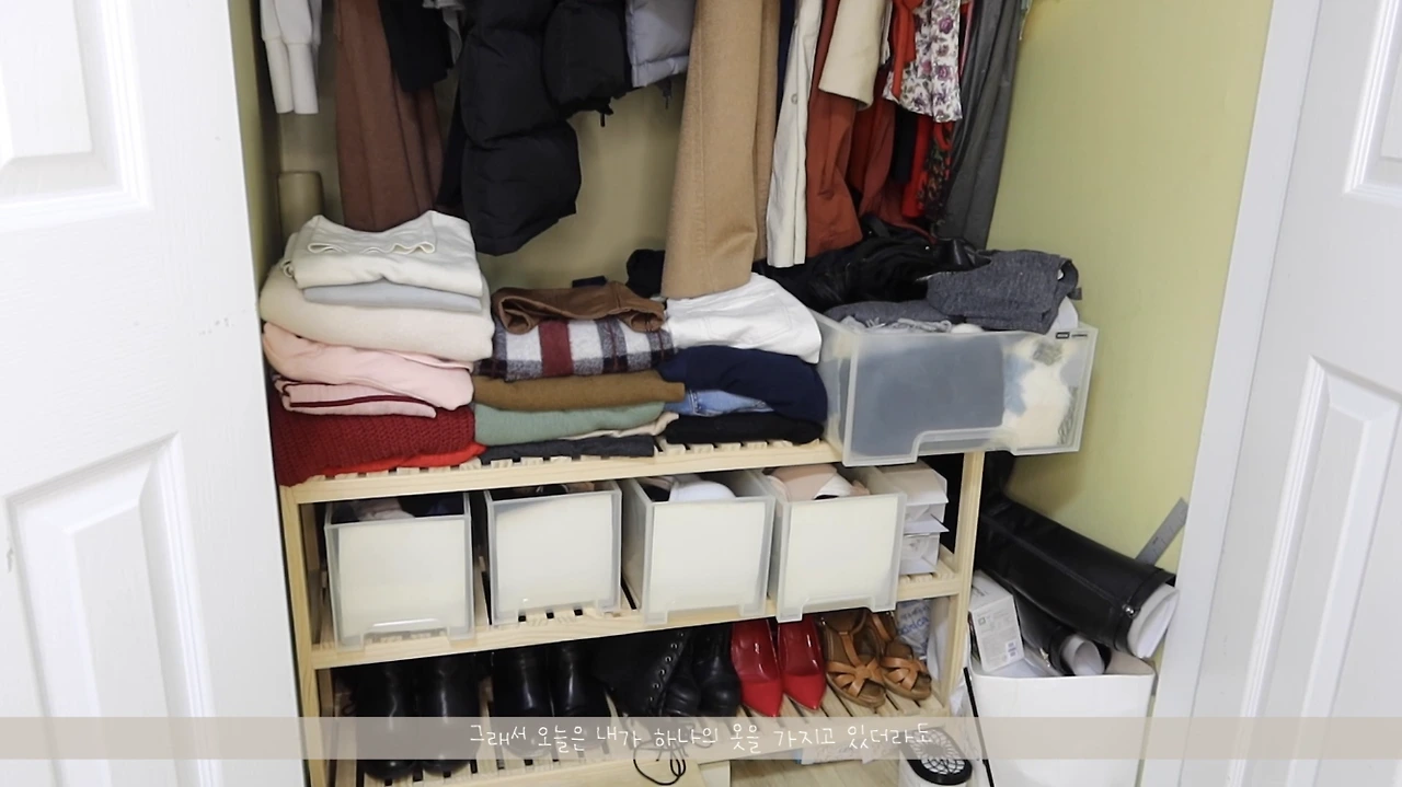 하지만 지금 제 옷장은 예전에 비하면 정말 많이 줄었습니다. 한 옷장 안에 사계절에 옷이 모두 들어가 있어요. 그리고 저는 너무너무 행복합니다.