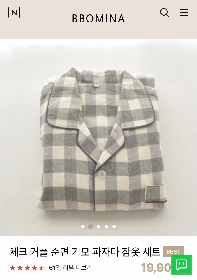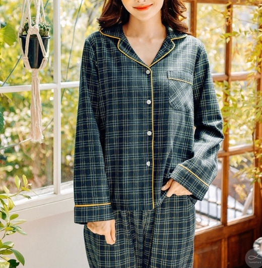 뽀미나 체크 커플 순면 기모 파자마 잠옷 세트
