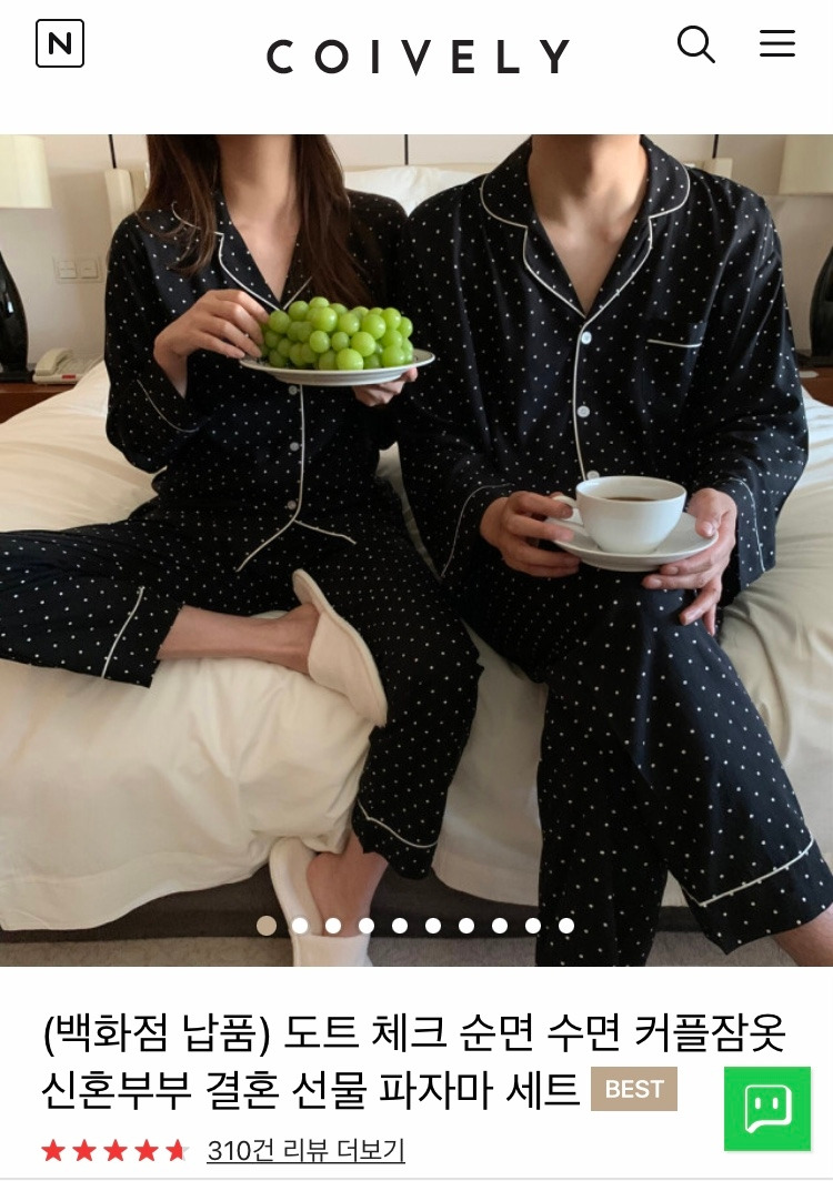 괜찮아 보이고, 밖에서 입을 수도 있을 것 같지만 이렇게 색감의 강렬한 대비가 있는 잠옷은 저에게는 조금 부담스럽네요. (지극히 개인 취향!)