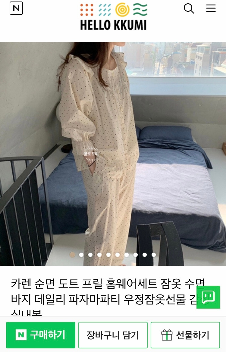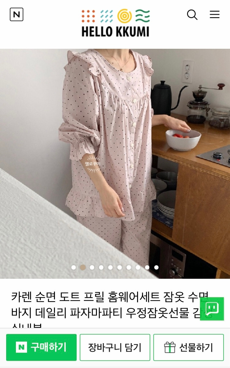이 제품도 귀여워서 쇼핑몰에서 홈웨어를 찾아봤지만 생각보다 종류가 많지는 않았어요. 그리고 이거보다 조금 더 두께가 있는 게 좋은데... 소재를 보니 레이온?! 패쓰